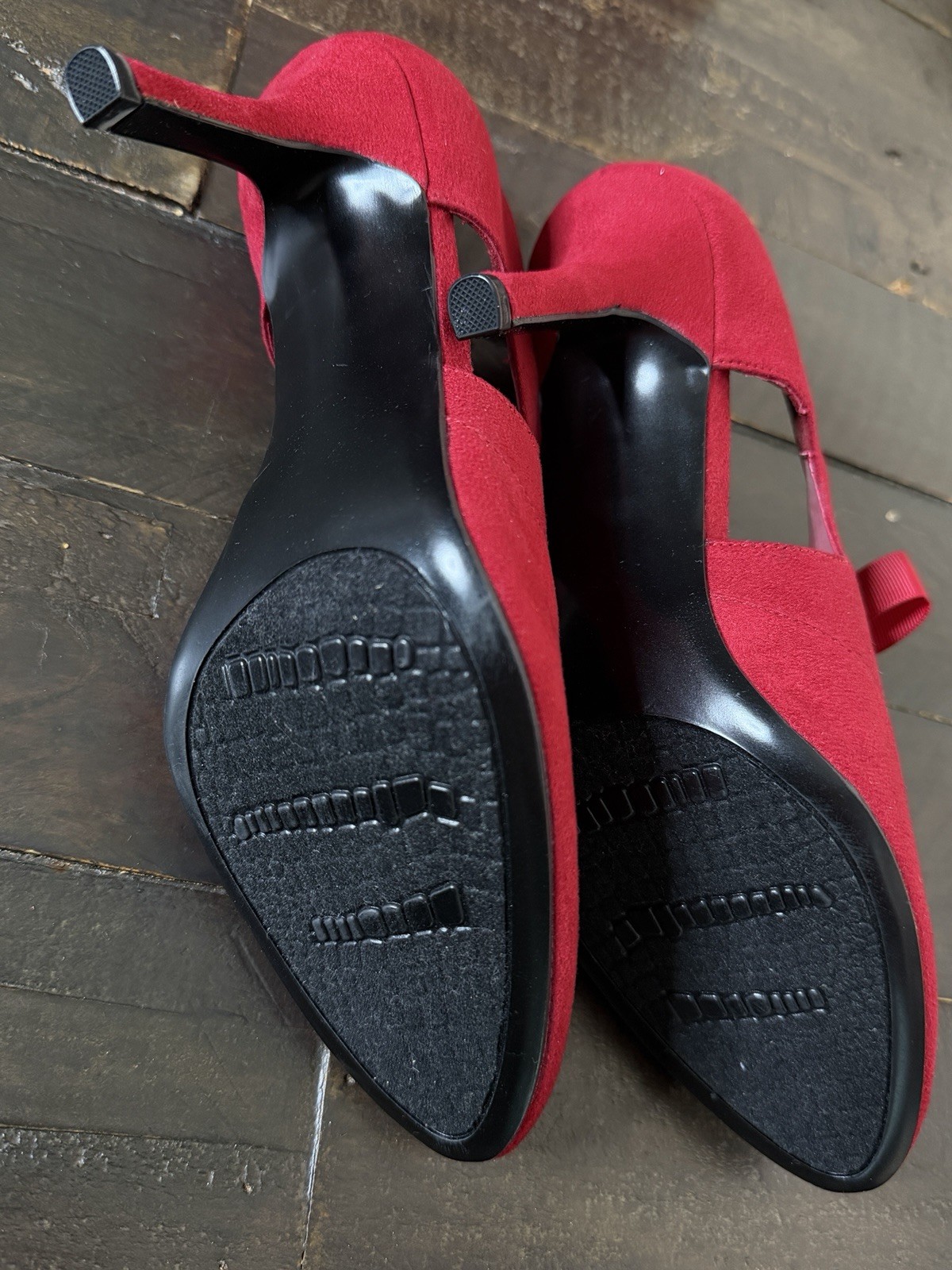 Impo Red Suede Bow Heels Pumps Tie-Time Grosgrain Bow Women’s 7.5M 3.5” Heel