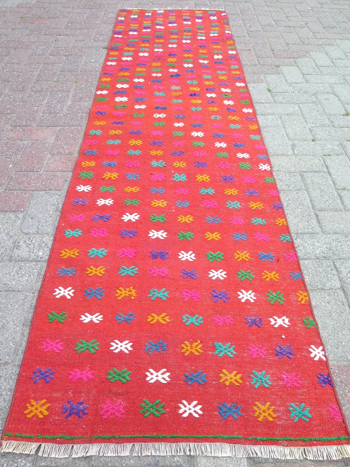 ANATOLIAN TURKISH HAND-WOVEN NOMADS KILIM RUNNER, LONG AREA RUG, CARPET RUNNER, KILIM RUG, RUGS, HALLWAY RUG, CORRIDOR RUG, LONG KELIMRUNNER, LONGRUGS, RUGS FOR SALE, WOOLRUGS, HOMEDECOR, RUG RUNNERS FOR SALE, TURKISHRUNNER, INTERIORDESIGNER, RUGRUNNER (ST27863)HANDWOVEN, NATURALLY DYED, PURE WOOL ON COTTON TRADITIONAL NOMADS TRIBAL DESIGN WEAVED BY TURKISH KILIM TECNIQUE GREAT CONDITION, READY TO USE FINE QUALITY , ABOUT 60 YEARS OLDSIZE : 28 inches X 105 inches or (70 CM X 266 CM)WORLDWIDE SHIPPING VIA DHL ! (ESTIMATED DELIVERY TIME IS 6 DAYS!)!!COMBINED SHIPPING OPTION FOR MULTIPLE ITEM PURCHASES!!(PLEASE CONTACT US FOR DETAILS)ALL IMAGES ARE ITEM BEING TAKEN IN OUTDOOR WITH DAY LIGHT!Any duties/taxes/clearance fee that may be collected at the time of delivery are the responsibility of the receiver!GOOD SHOPPING