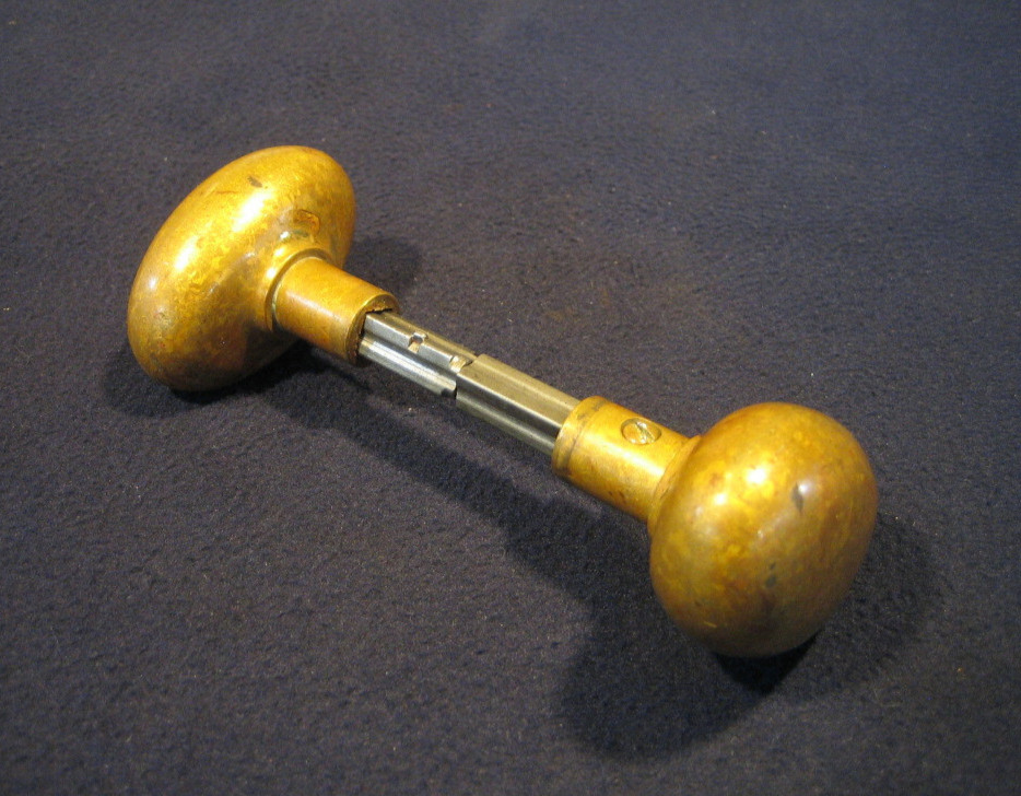 For your consideration is an incredible pair of antique heavy brass entry door knobs manufactured in the early1900's. They have the larger standard spindle diameter 3/8". They have not been cleaned and are in as-found condition. The diameter of the knob shanks the will fit into your escutcheons is 3/4". Please look at the pictures carefully as they are considered part of the description. Make sure to ask questions before you bid. Be sure to check out my other auctions of similar antique door hardware. Thanks for looking.Terms for Bidding: By bidding on this auction, you agree to the following terms:If there is a problem with the transaction: Please contact me if there is an issue with the purchase before using the eBay automated tools or leaving negative feedback. I will work directly with you to resolve any problem to mutual satisfaction.Item description: I try to describe my items to the best of my ability, but it is not always possible for me to perceive what your concerns with this item might be. Please look at all the pictures carefully and ask questions before you bid. Payment: Payment for Auction expected within 2 days of auction complete. Immediate Payment expected for Buy-it-Now. If for some reason you are unable to pay within stated time, please email me to let me know.Shipping: Stated shipping price is for the continental USA. I do accept bids from buyers outside the USA through eBay’s Global Shipping program. Additional shipping / processing charges apply through that program.Refund / Returns: All sales are final – No return accepted for this item. Please contact me if there is an issue with the item.