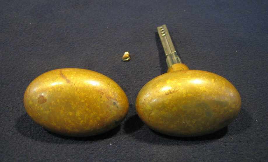 Incedible Pair Antique Heavy Brass Oval Entry Mortise Door Knobs - Early 1900's