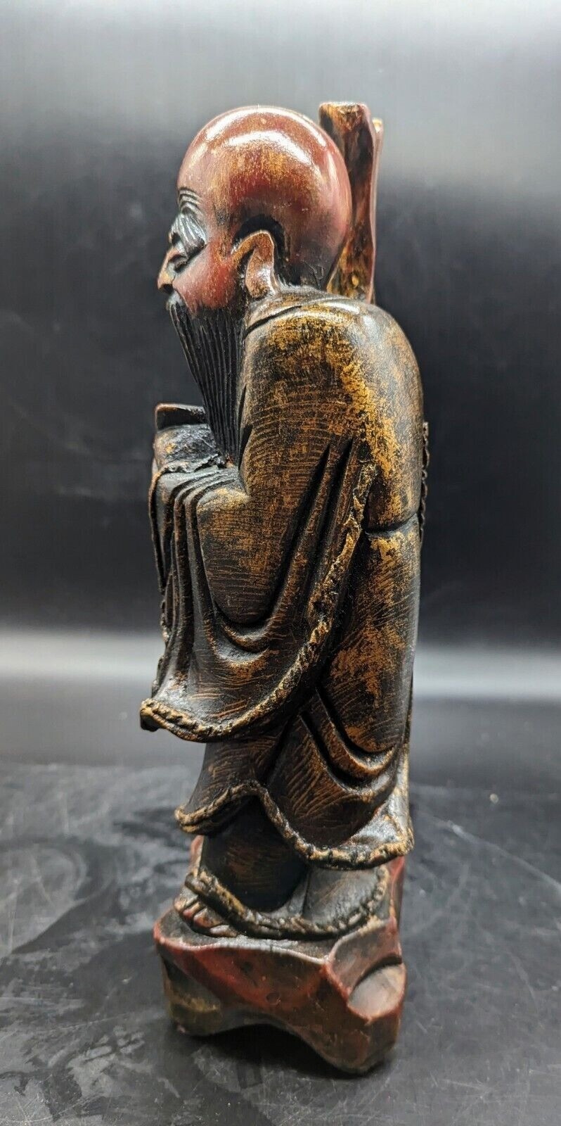 Vintage Hand Carved Chinese Wood Wiseman Figurine 12.25" Collectible