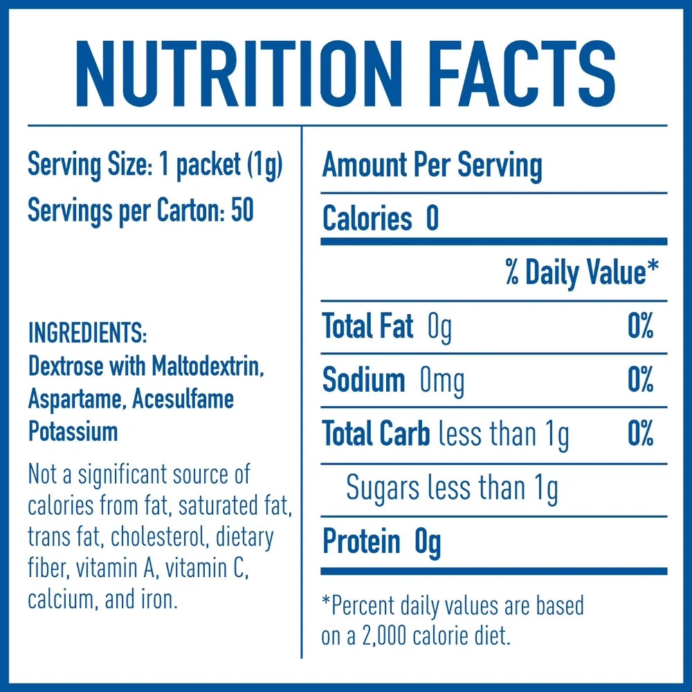 Product Details Equal Zero Calorie Sweetener Packets Equal Zero Calorie Sweetener packets are perfect for sweetening coffee, iced tea and other drinks. The zero-calorie sweetener you know and love dissolves quickly in hot or cold beverages, adding sweetness to every sip. This convenient 1,000-count bulk box of Equal Zero Calorie Sweetener packets has zero calories, fat, sodium or carbs per serving. Each packet of this substitute has the same sweetness as two teaspoons of sugar. Great Tasting Sweetener These packets are perfect for sweetening recipes, cereal and drinks! Use Equal Zero Calorie Sweetener packets to sweeten everything from coffee and tea to fruit smoothies. Sugar Substitute and Coffee Sweetener Equal Zero Calorie Sweetener is a delicious and sweet alternative to sugar and raw sugar packets for coffee, as well as stevia sweeteners, monk fruit sweeteners, erythritol sweeteners and other brands and varieties of artificial sweeteners, natural sweeteners and sugar alternatives. It is a great tasting low carb choice for sweetening coffee or any other beverage. Great for the Workplace This bulk pack of Equal Zero Calorie Sweetener sugar substitute packets is ideal for the workplace. Use it in break rooms, office kitchens, waiting rooms, lobby beverage stations, coffee bars or anywhere else sweetness is needed. Key Specifications Box of 1,000, single-serve packets of Equal Zero Calorie Sweetener Each sugar substitute packet sweetens like two teaspoons of sugar Dissolves quickly in hot or cold beverages Great for sweetening recipes, cereal, coffee, tea and other beverages Gluten Free and Kosher Certified Equal Zero Calorie Sweetener is a gluten free sugar alternative and is kosher parve certified by the Orthodox Union. Diabetic Sweetener Equal Zero Calorie Sweetener is suitable for individuals with diabetes. Replacing added sugar with zero-calorie sweeteners can help individuals with diabetes manage their health while enjoying sweetened food and beverages. Sugar Replacement for Keto Diets Equal Zero Calorie Sweetener is a keto sugar substitute with less than 1 gram of carbs per serving. Ingredients Dextrose with Maltodextrin, Aspartame, Acesulfame Potassium Customer Satisfaction Guaranteed Your satisfaction is our top priority! We’re committed to providing a smooth and positive shopping experience. If you have any questions or concerns, please don’t hesitate to reach out—we’re here to help. Your issue will be resolved quickly and fairly. Thank you for shopping with us! 🚚 FREE SHIPPING! We invite you to place your order now to take advantage of our fast and free delivery service. Satisfaction guaranteed. — End of Description | Shop with Confidence — Keywords which sweetener has 0 calories which zero calorie sweetener is the best which zero calorie sweetener is the healthiest is equal 0 calories is equal zero calorie sweetener bad for you is equal sweetener zero calorie equal zero calorie sweetener packets, 1000 ct. equal zero calorie sweetener packets 1000 ct is equal zero calorie sweetener bad for you is zero calorie sweetener bad for you are zero calorie sweeteners really zero calories what is zero calorie sweetener why are artificial sweeteners zero calories equal zero calorie sweetener 1000 ct equal zero calorie sweetener 1000 ct x 2 equal 0 calorie sweetener 1000 ct 3 oz as equal zero calorie sweetener packets, 1000 ct. equal zero calorie sweetener packets 1000 ct is equal zero calorie sweetener bad for you is zero calorie sweetener bad for you are zero calorie sweeteners really zero calories what is zero calorie sweetener why are artificial sweeteners zero calories equal zero calorie sweetener 1000 ct equal zero calorie sweetener 1000 ct x 2 equal 0 calorie sweetener 1000 ct 3 oz as equal zero calorie sweetener packets, 1000 ct. equal zero calorie sweetener packets 1000 ct is equal zero calorie sweetener bad for you is zero calorie sweetener bad for you are zero calorie sweeteners really zero calories what is zero calorie sweetener why are artificial sweeteners zero calories equal zero calorie sweetener 1000 ct equal zero calorie sweetener 1000 ct x 2 equal 0 calorie sweetener 1000 ct 3 oz as is equal zero calorie sweetener bad for you is zero calorie sweetener bad for you are zero calorie sweeteners really zero calories does zero calorie sweetener make you gain weight are zero calorie sweeteners healthy is equal zero calories is equal sweetener zero calorie is equal calorie free is equal really zero calories is zero calorie sweetener bad for you is splenda zero calorie sweetener bad for you is equal zero calorie sweetener bad for you is stevia zero calorie sweetener bad for you is zero calorie sweetener bad for you reddit does zero calorie sweetener make you gain weight are zero calorie sweeteners really zero calories are zero calorie sweeteners healthy is zero calorie sweetener bad for diabetics is zero calorie sweetener good for weight loss are zero calorie sweeteners really zero calories are zero calorie sweeteners healthy is zero calorie sweetener bad for you is equal zero calorie sweetener bad for you what are zero calorie sweeteners are zero calorie sweeteners actually zero calorie are zero calorie sweeteners better than sugar what is zero calorie sweetener what is zero calorie sweetener made of what is the best zero calorie sweetener what is the healthiest zero calorie sweetener what zero calorie sweetener is best for you what sweetener is in milo's zero calorie tea what is the safest zero calorie sweetener what is the best tasting zero calorie sweetener what is splenda zero calorie sweetener what is the best zero calorie sweetener for baking why are artificial sweeteners zero calories is equal zero calorie sweetener bad for you is zero calorie sweetener bad for you are zero calorie sweeteners really zero calories why are artificial sweeteners 0 calories equal zero calorie sweetener 1000 ct equal zero calorie sweetener 1000 ct free shipping equal zero calo