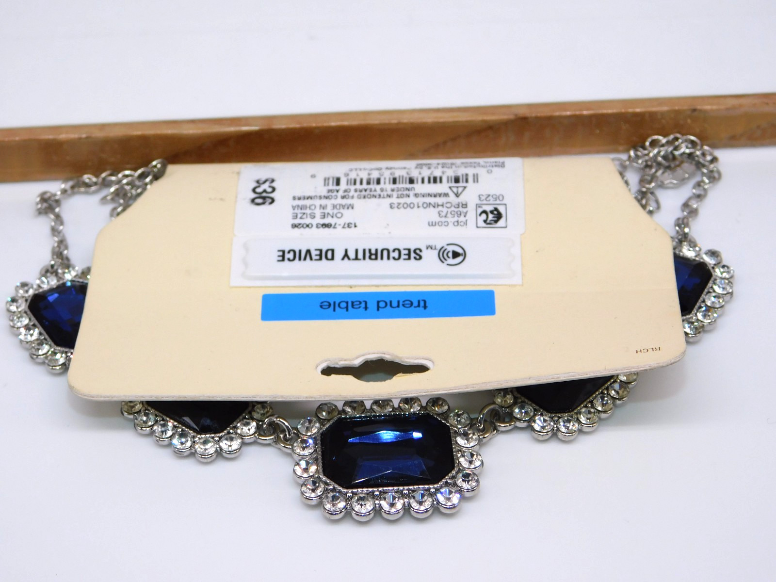 MONET Blue Faceted Glass Rhinestone Statement Necklace New with Tag Specs