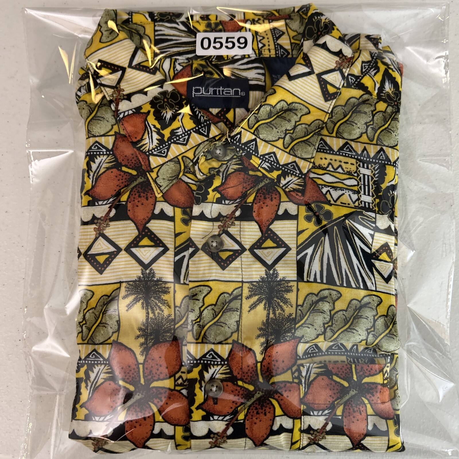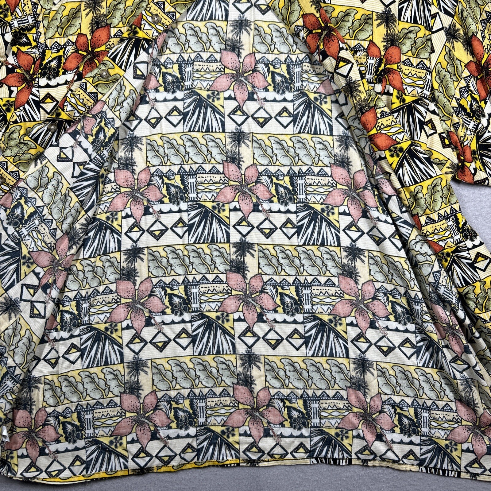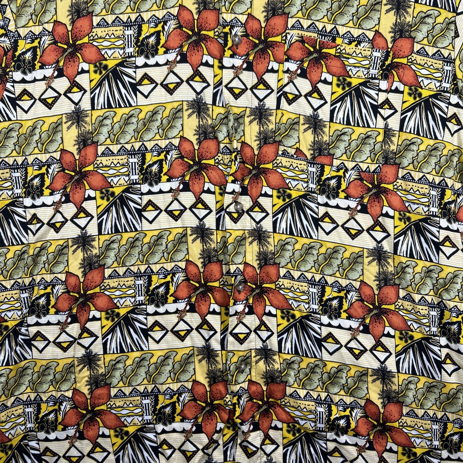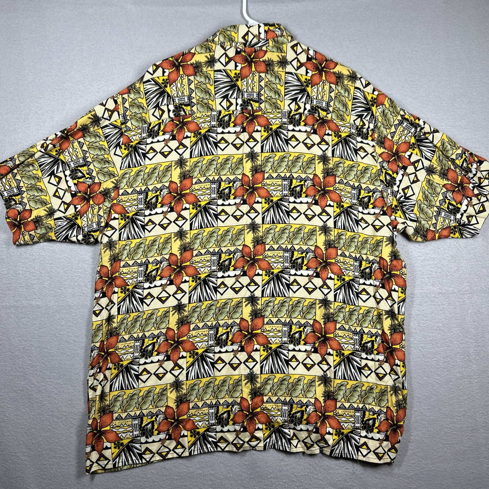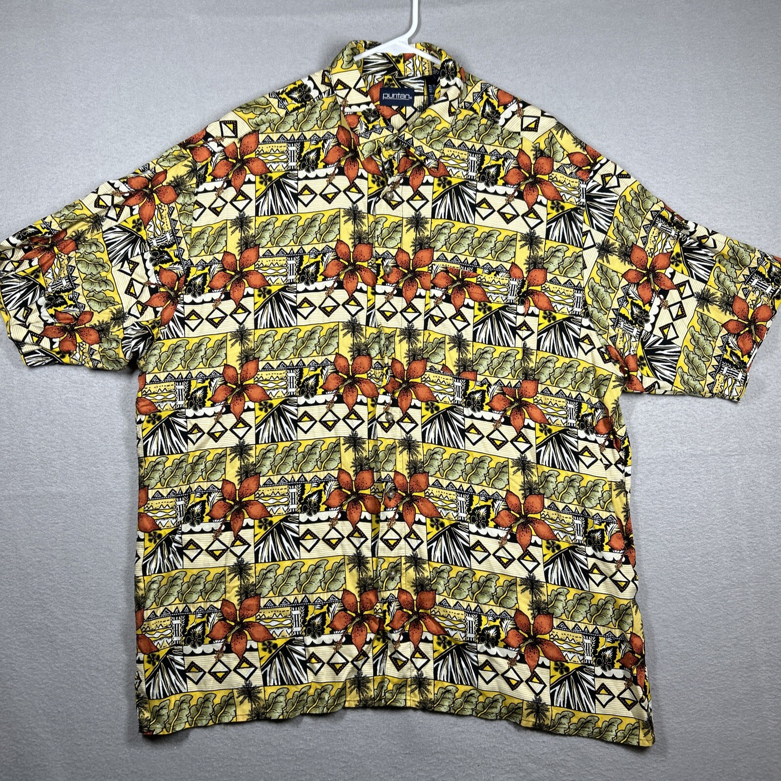 Puritan Button Up Shirt Men's XL Short Sleeve Vibrant Hawaiian Print Rayon Specs