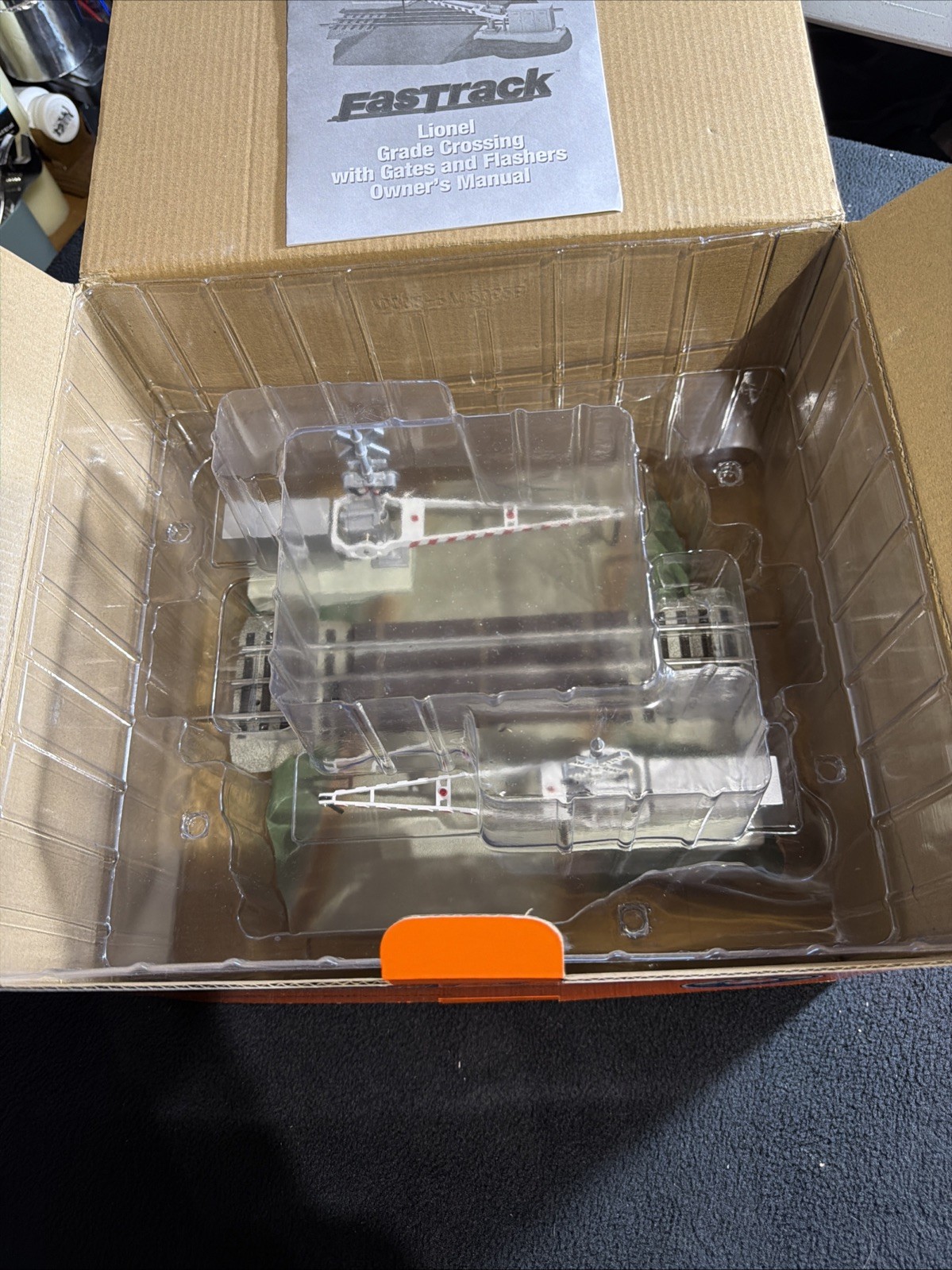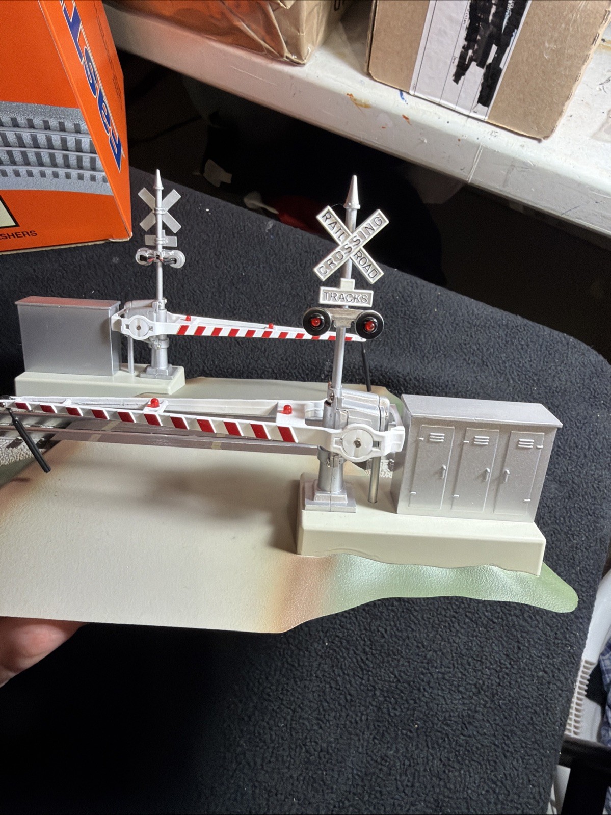 Two grade crossings with gates flashers and bells up go sale.Were used one time for four laps with my BNSF diesel. I had just received these from a Lionel distributor and found out that I needed to move so all of my track had to come up. I just wanted to make sure that these were working. I’ve cleaned them the track. I did write in marker on two of the insulated tracks on the side of crossing gate 13A no markings on crossing gate 13B you will see in one of the pictures 13A never should’ve done that, but I never expected to be selling these.The second grade crossing 13B has no writing on the two insulated 5 inch extensionsthe place that I moved into. I do not have enough room. For my 072 fast track all my engines need 072 track.I’m going into HO and selling all of my O gauge.Track ,switches, freight cars, passenger cars, buildings trucks ,cars ,airport planes, ambulances with lights, firetrucks towers with lights my engines all have motor running. Sounds shut down start up bells honor horns crew talkBNSF , Burlington Northern, Santa Fe and heroes among usThe grade crossings run as they should and they are clean thanks for stopping. Hope to see you again.