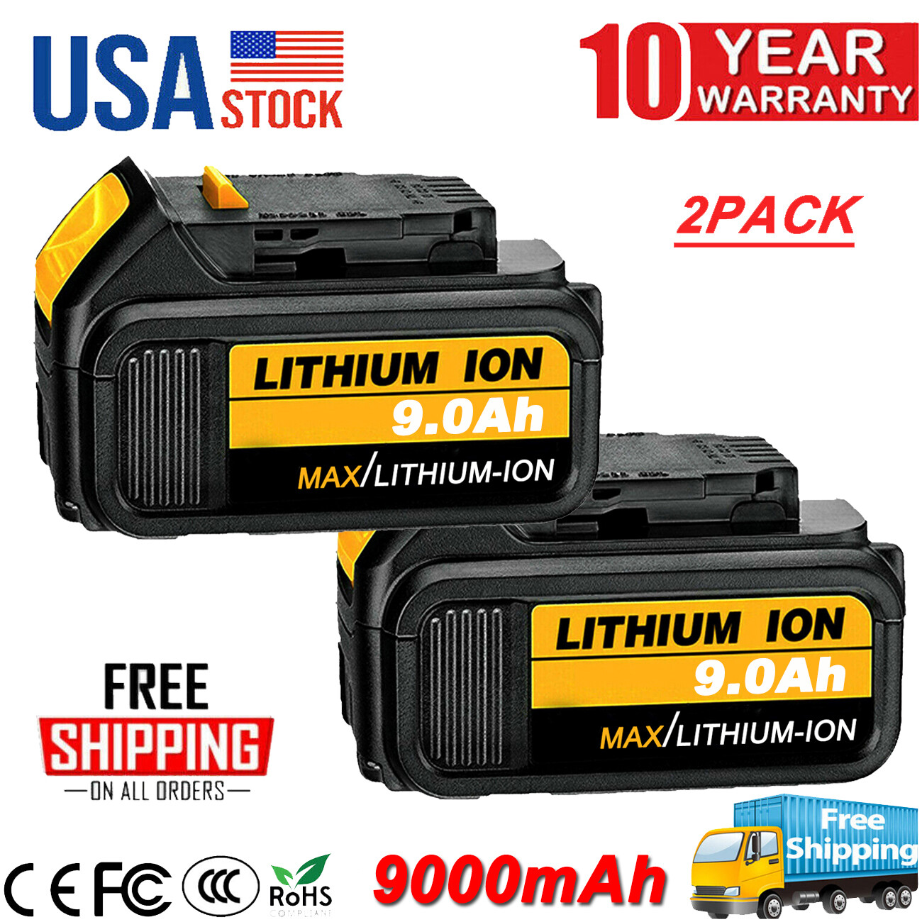 2X 20V For DeWalt DCB206-2 20 Volt Max XR 9.0AH Lithium Ion Battery DCB205-2 US