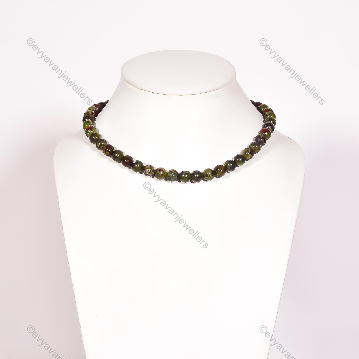 Gift For Women Beaded Adjustable Necklace 925 Silver Dragon Bloodstone Gemstone