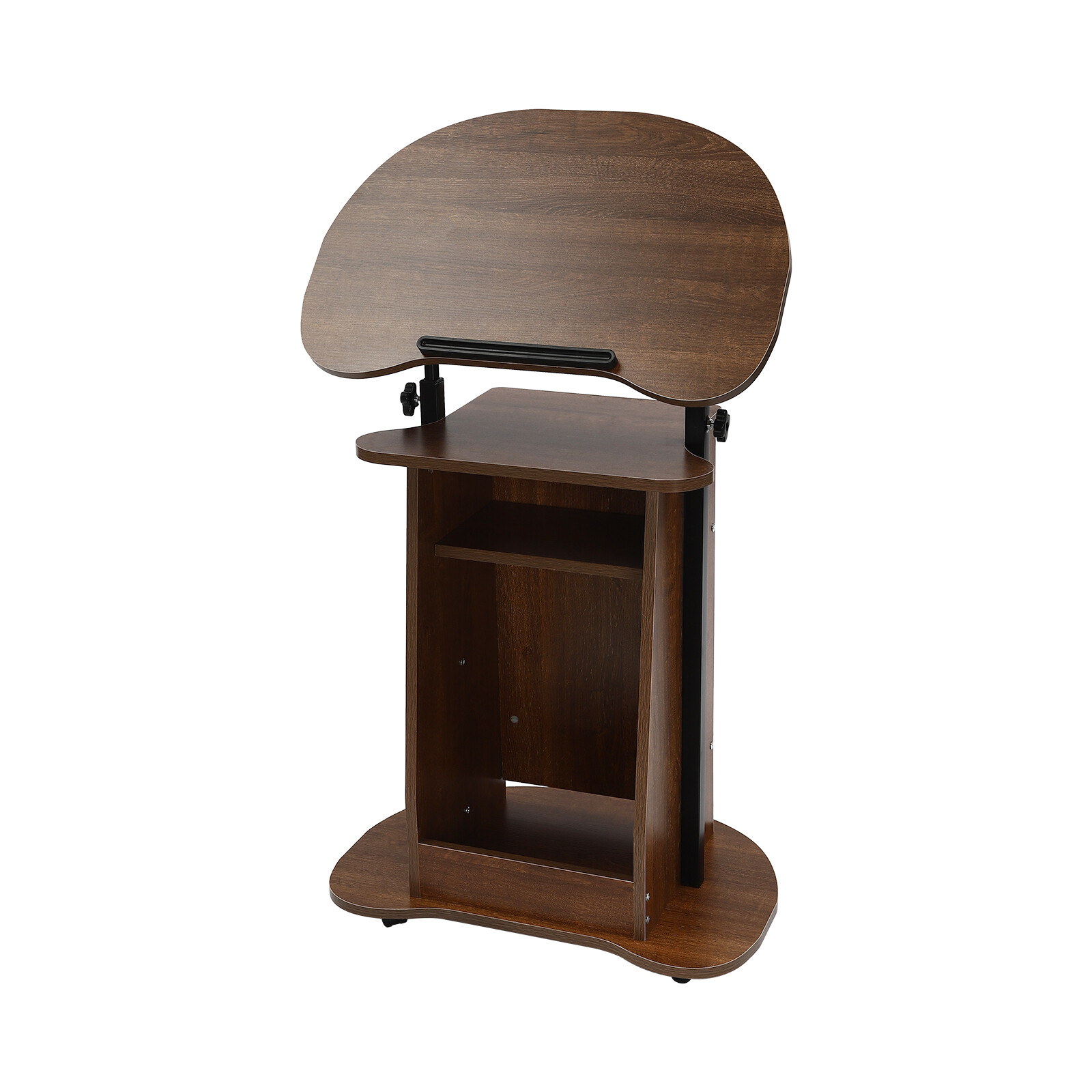 Portable Wood Podium Stand Height Adjustable Wheeled Lectern with Storage Shelf