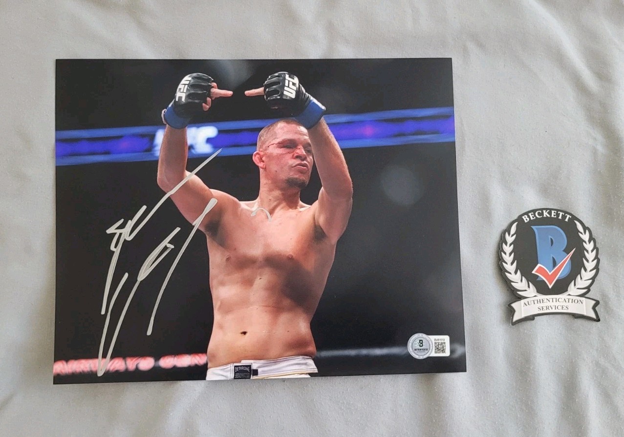 Item for sale is a Nate Diaz signed UFC 8x10 photo. Authenticated by Beckett BAS COA . Signed in person. Please email me with any questions. Thanks