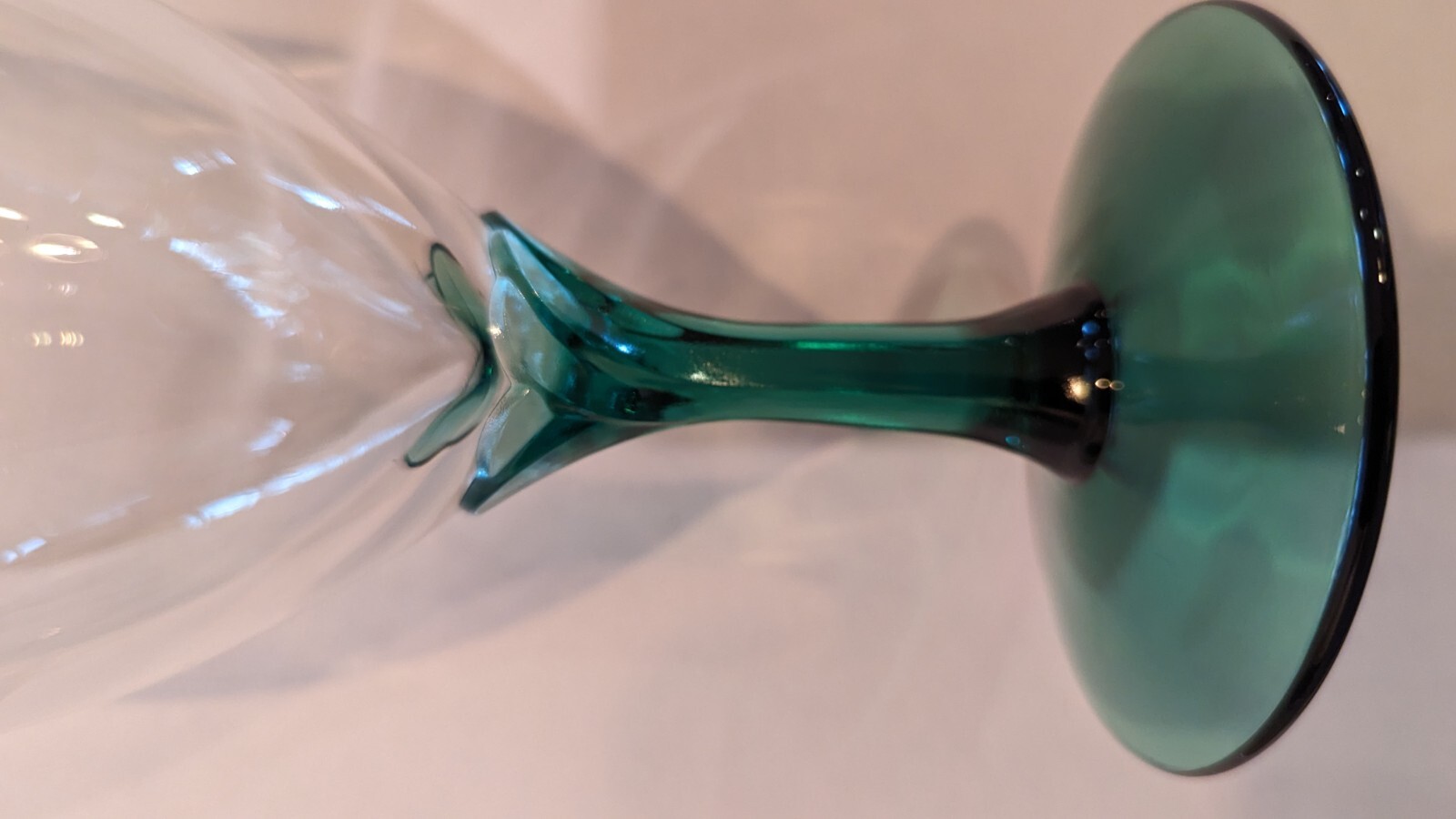Elevate your next gathering with this set of eight stunning Domaine Green (Juniper) iced tea glasses from the renowned brand, Libbey. The round shape and decorative style of these hand-blown glasses make them a perfect addition to any occasion, whether it's a formal dinner party or casual backyard BBQ. With a 16-ounce capacity and sturdy stem, these goblets are both beautiful and functional, and are sure to impress your guests.Excellent condition.No cracks or chips. 16oz capacity 7.75" tall 3.25" wide - (approximately)