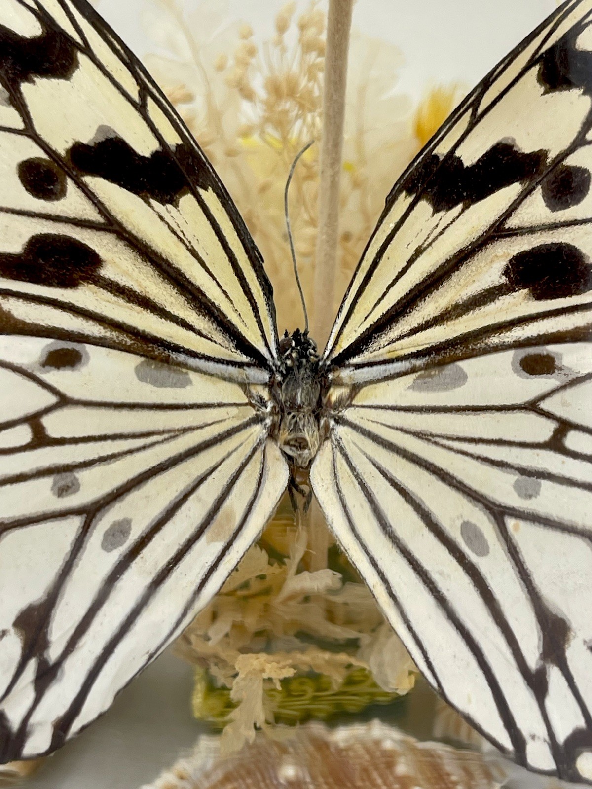 VTG Blown Glass Ornament with Dried Flowers & Butterflies - Used