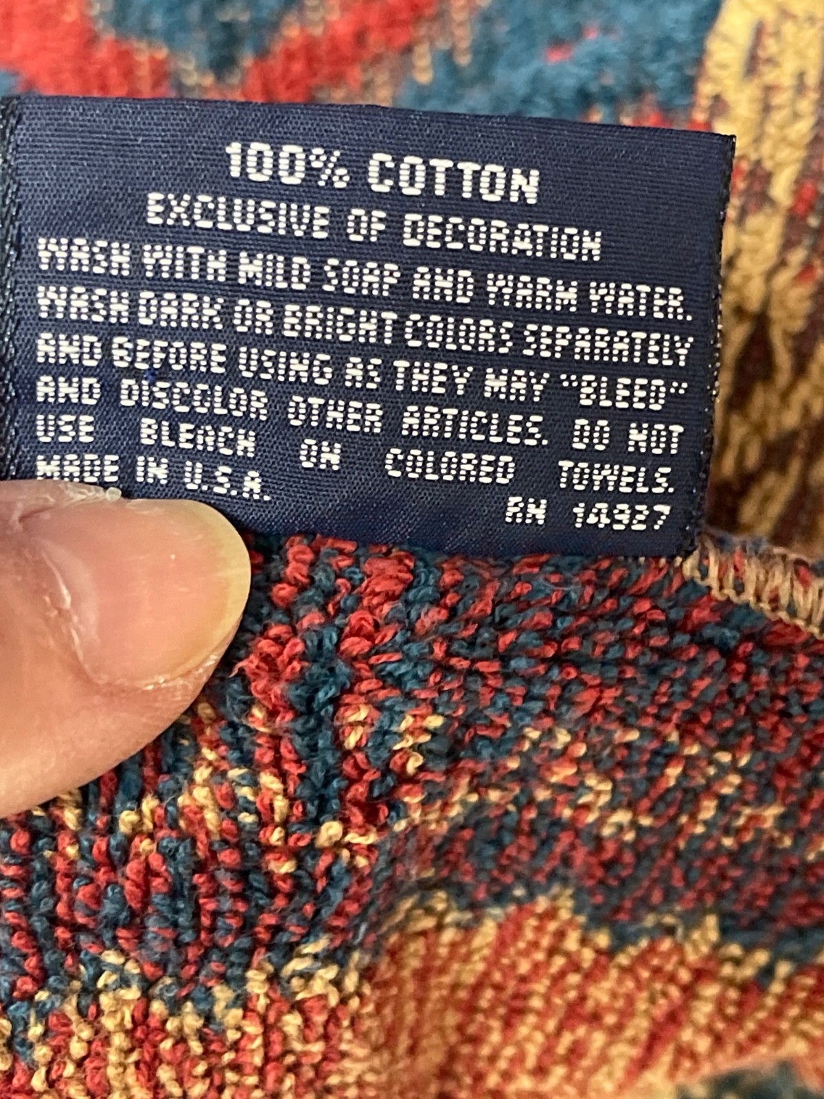 color Aztec pattern adds a unique and collectible element to the design from the 1990s. Made in the United States, this towel set offers both functionality and aesthetics for a timeless look.Bath towels measures 48”x26.5”.