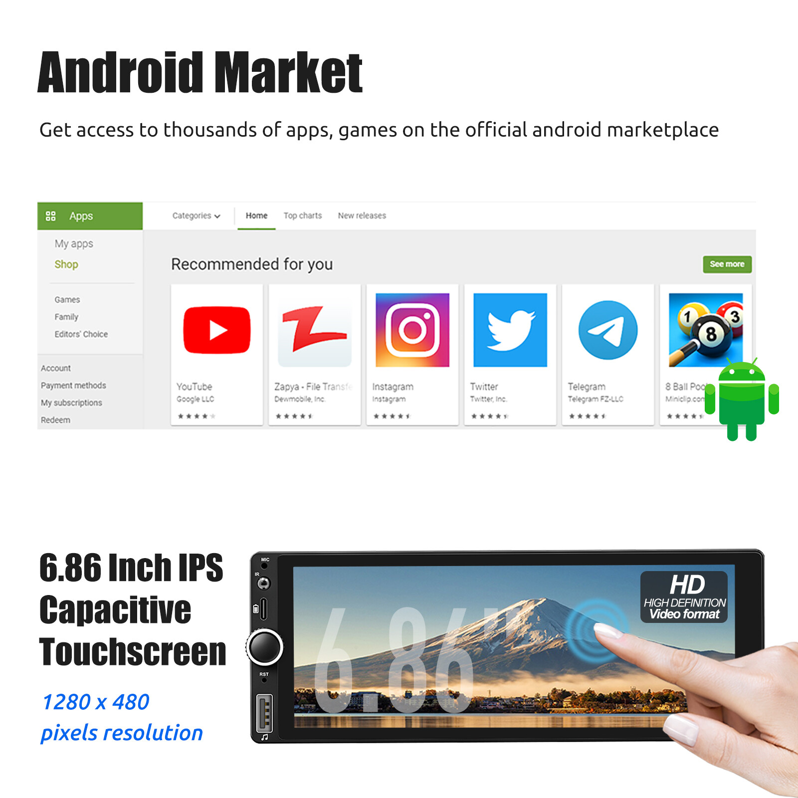 7" Single 1Din Touch Screen Car Stereo Radio For Apple/Android CarPlay Bluetooth Specs