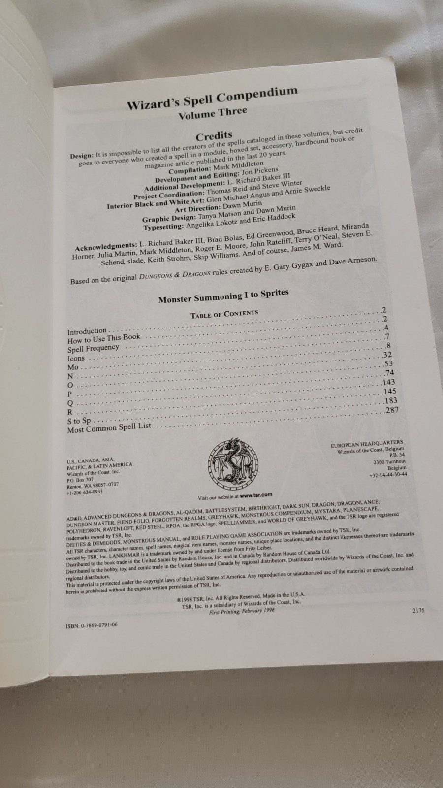 TSR AD&D Wizards Spell Compendium Volumes 1-4 Advanced Dungeons & Dragons
