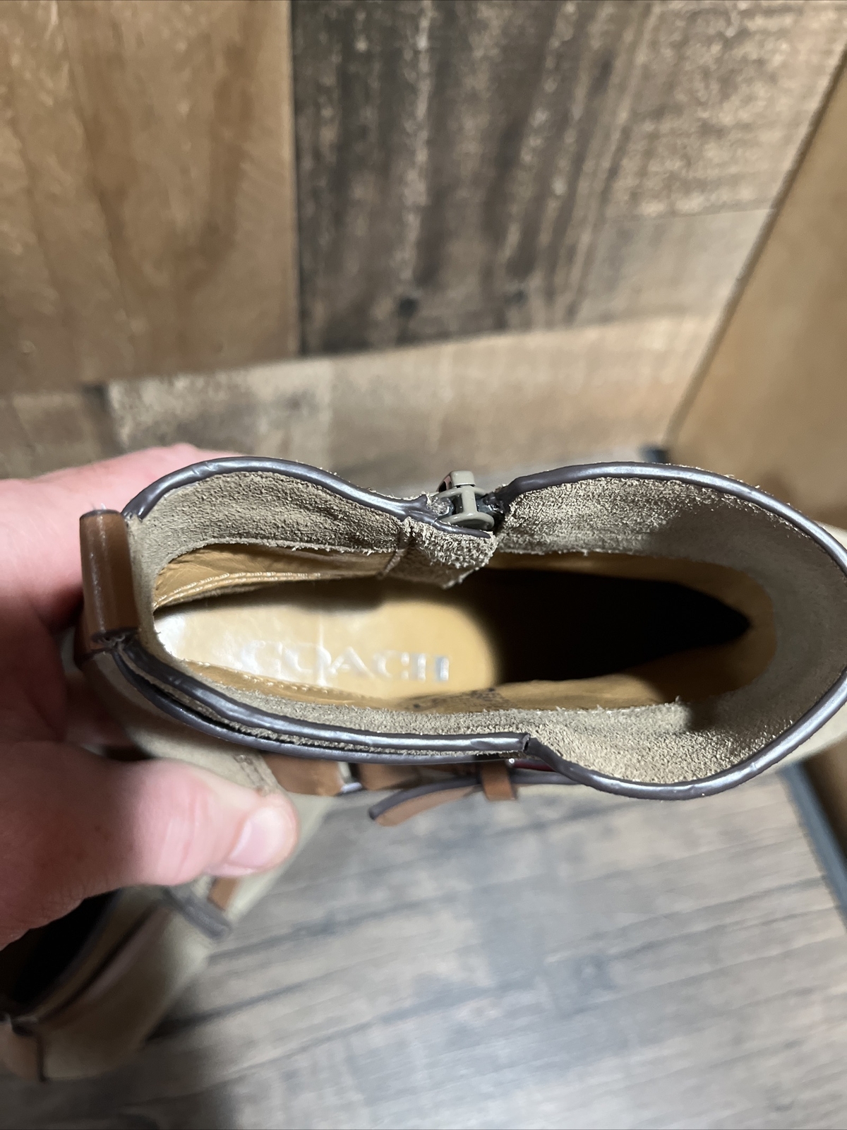 Coach Boots Womens 6.5 Pauline Ankle Booties Gray Leather Block Heels Casual Specs