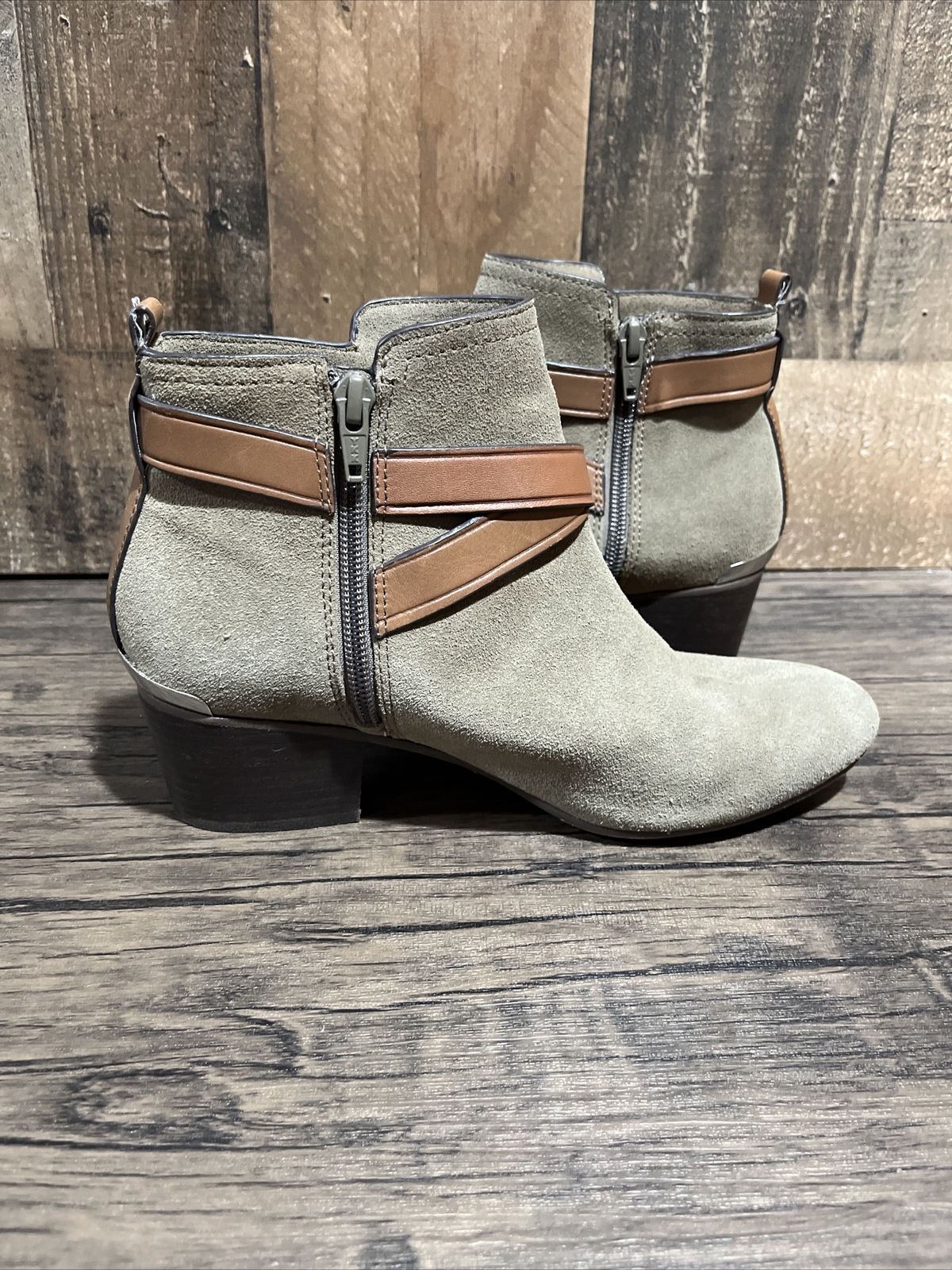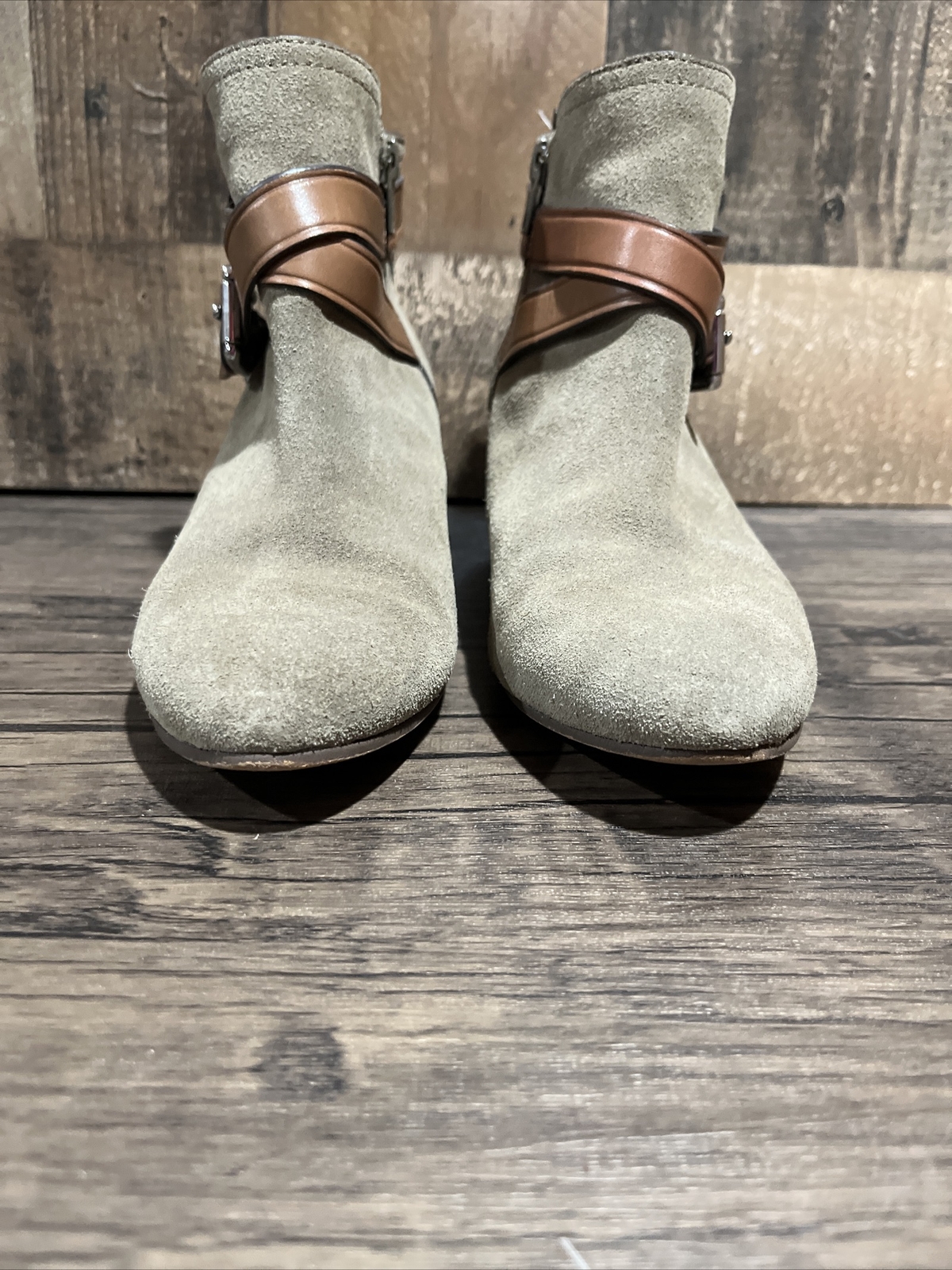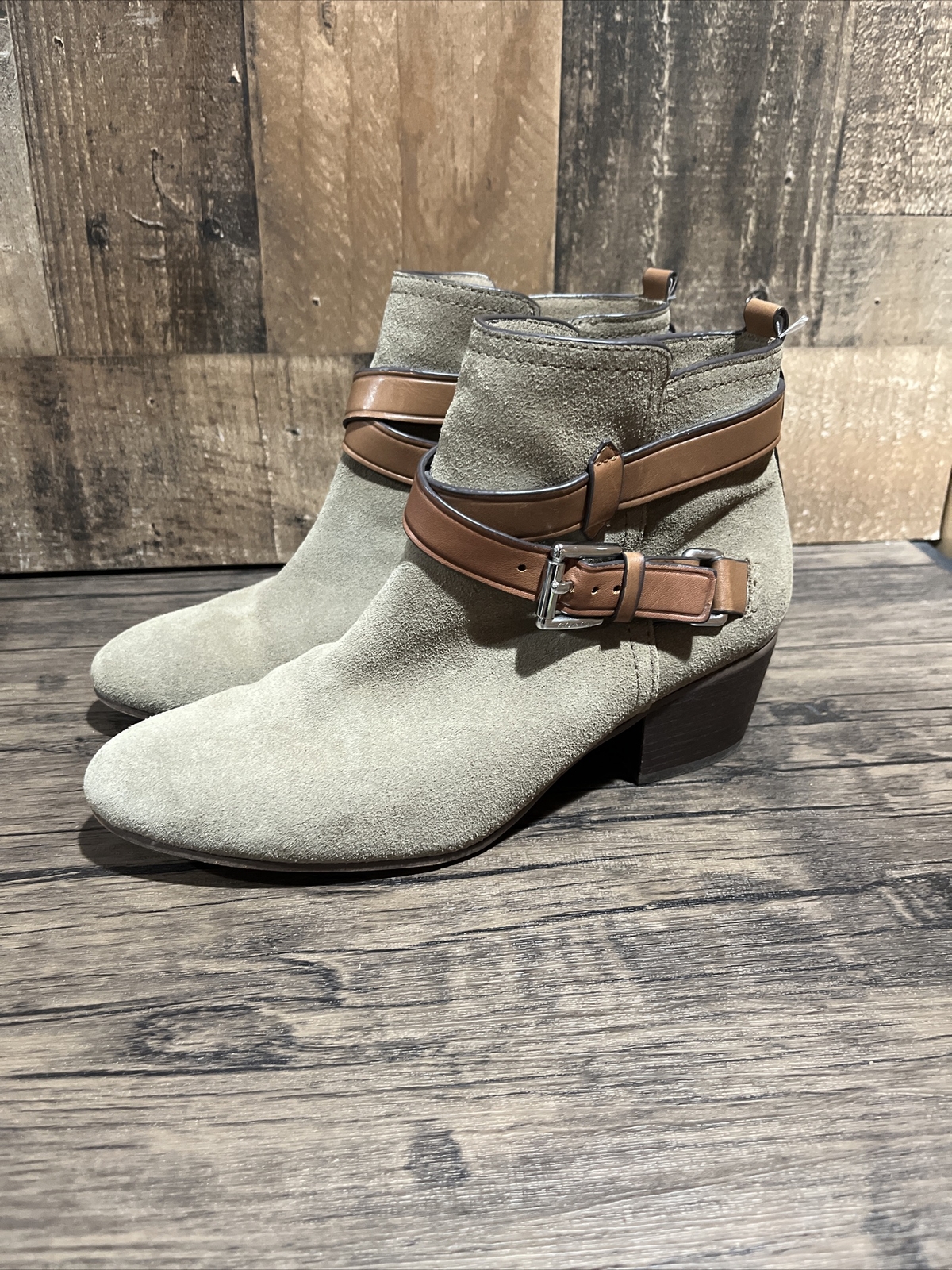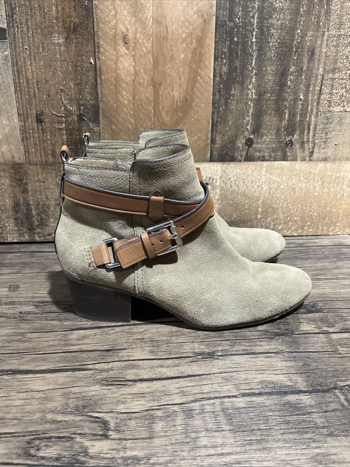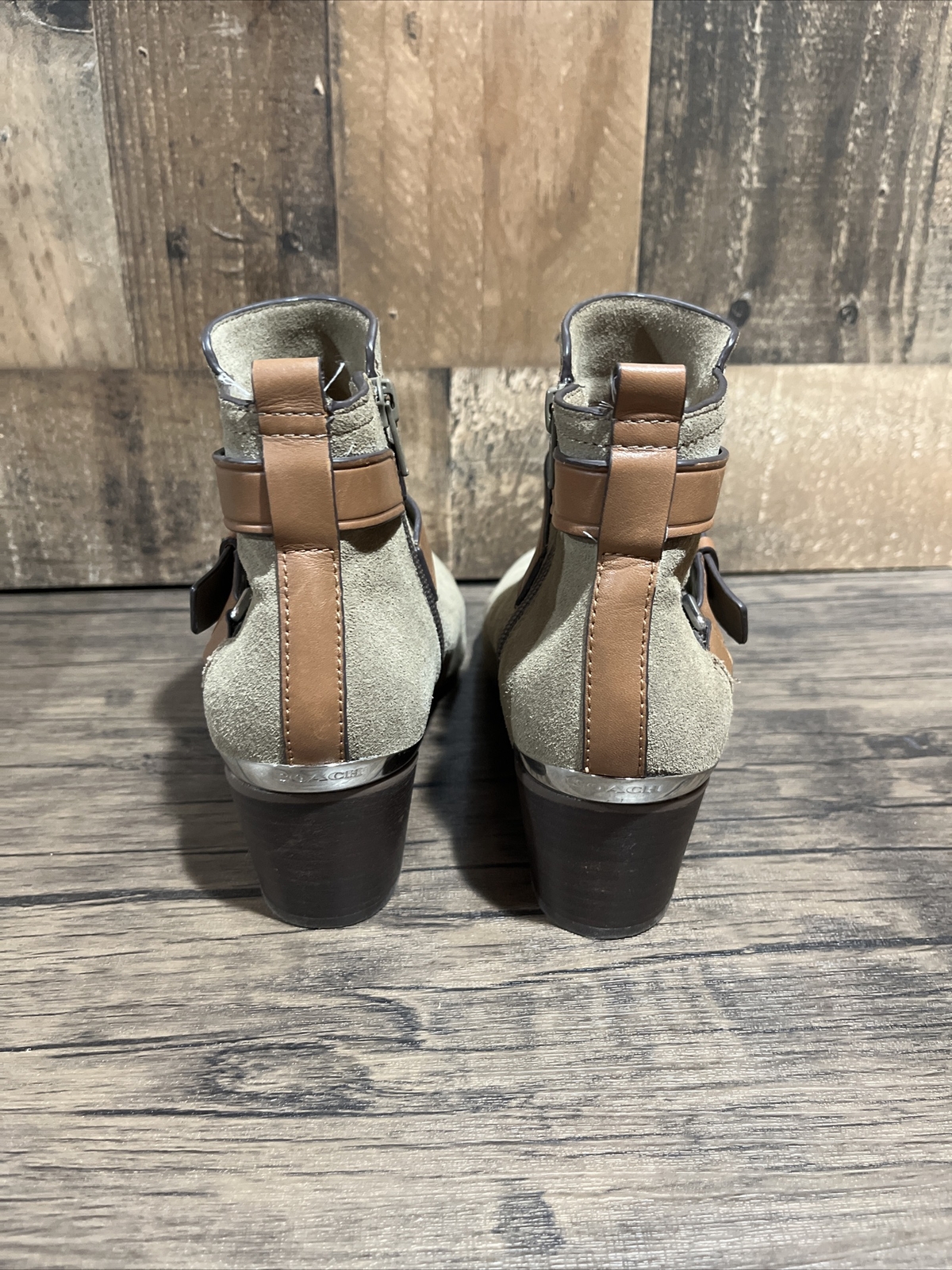 Coach Boots Womens 6.5 Pauline Ankle Booties Gray Leather Block Heels Casual