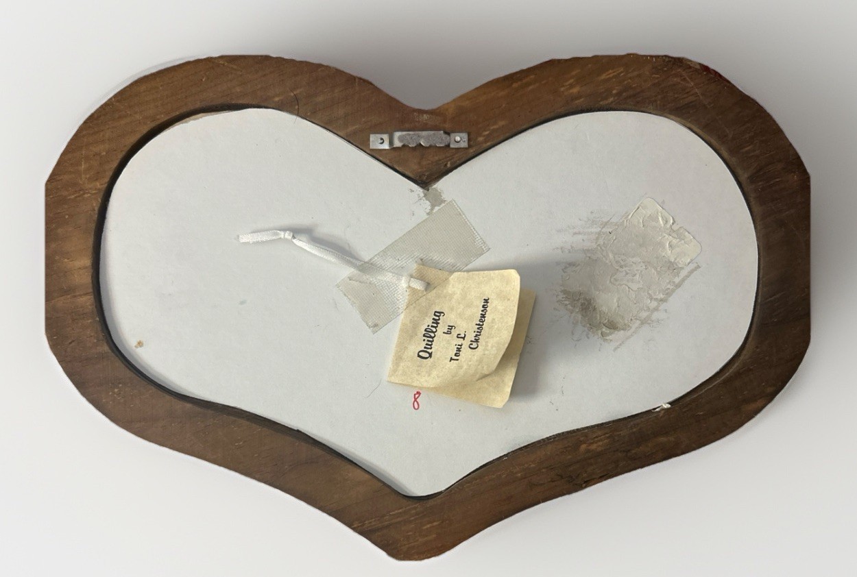 Vtg Handmade Quilled Paper Flower Folk Art Heart Plaque SigneToni C Christenson