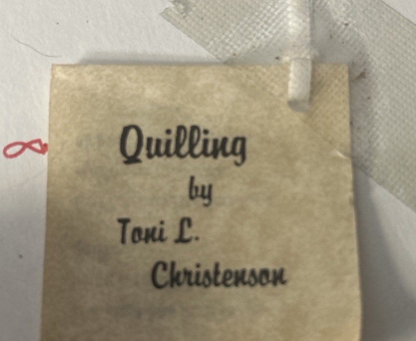 Vtg Handmade Quilled Paper Flower Folk Art Heart Plaque SigneToni C Christenson Specs