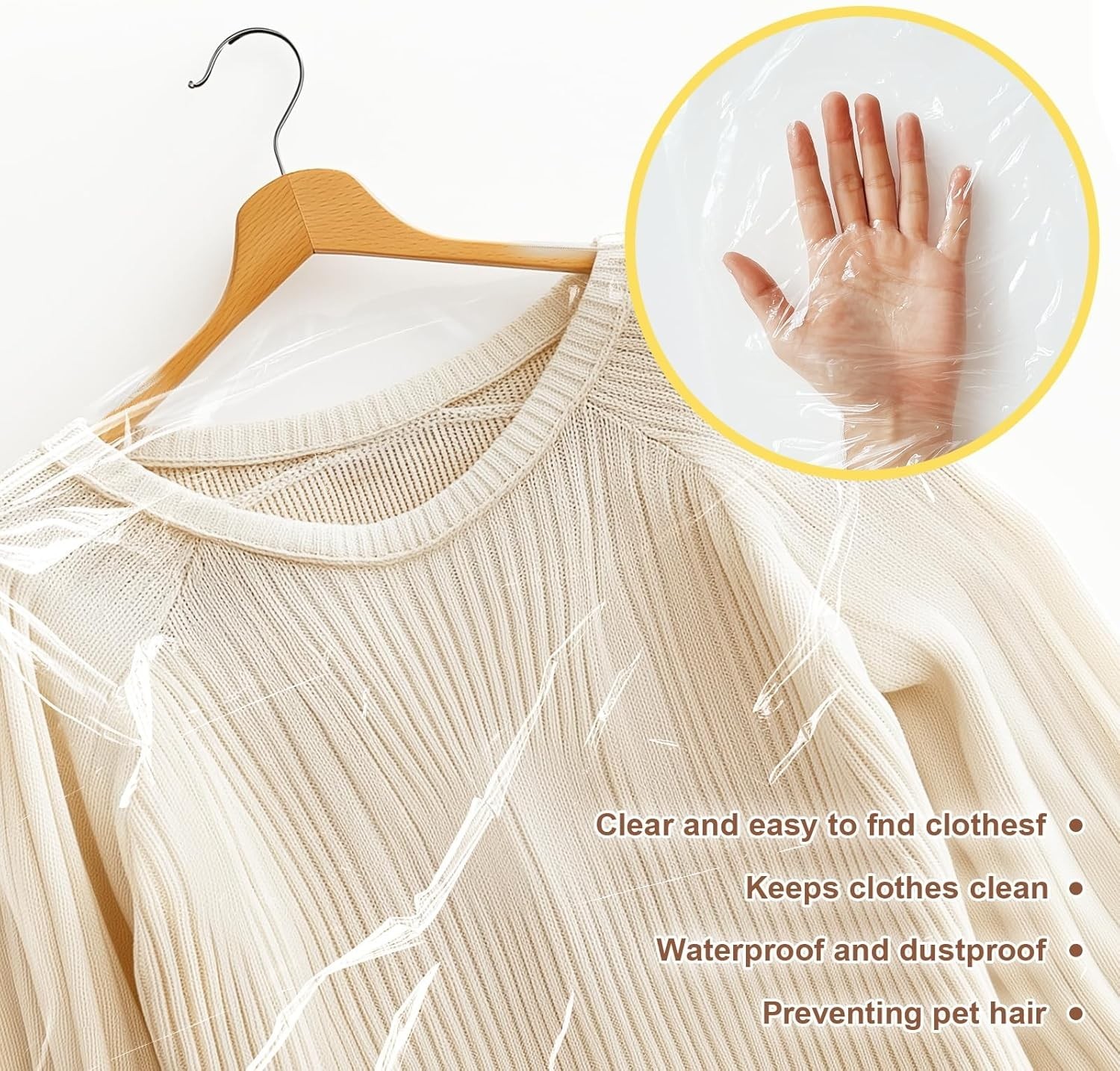 Colorclear-40pcsMaterialPlasticBrandGretchinProduct Dimensions35.4"L x 23.6"W x 0.01"HClosure TypeZipperAbout this itemCLOSET STORAGE - This pack includes 40 clear garment bags, measuring 60x90cm / 23.6x35.4 inch, Enhance the overall organization and tidiness of your wardrobe.CLEARLY VISIBLE - The transparent design makes it easy to see your clothes without opening the bag, eliminating confusion when searching for items.QUALITY MATERIAL - Made from high-quality PE plastic, these garment covers are lightweight and odorless, ensuring your clothes stay fresh.DUSTPROOF PROTECTION - These hanging bags provide excellent protection against dust, pet hair, and odors, making them ideal for closet storage, moving, or travel.VERSATILE USE - Ideal for both personal and professional settings, these covers are great for dry cleaners, retail stores, and tailor shops.Product descriptionGood Helper For Closet StorageThese clear garment covers are designed to protect yout clothes.Dustproof ProtectionThese hanging bags provide excellent protection against dust, pet hair, and odors, making them ideal for closet storage, moving, or travel.Clearly VisibleThe transparent design makes it easy to see your clothes without opening the bag, eliminating confusion when searching for items.Quality MaterialThese garment covers are lightweight and odorless, ensuring your clothes stay fresh.