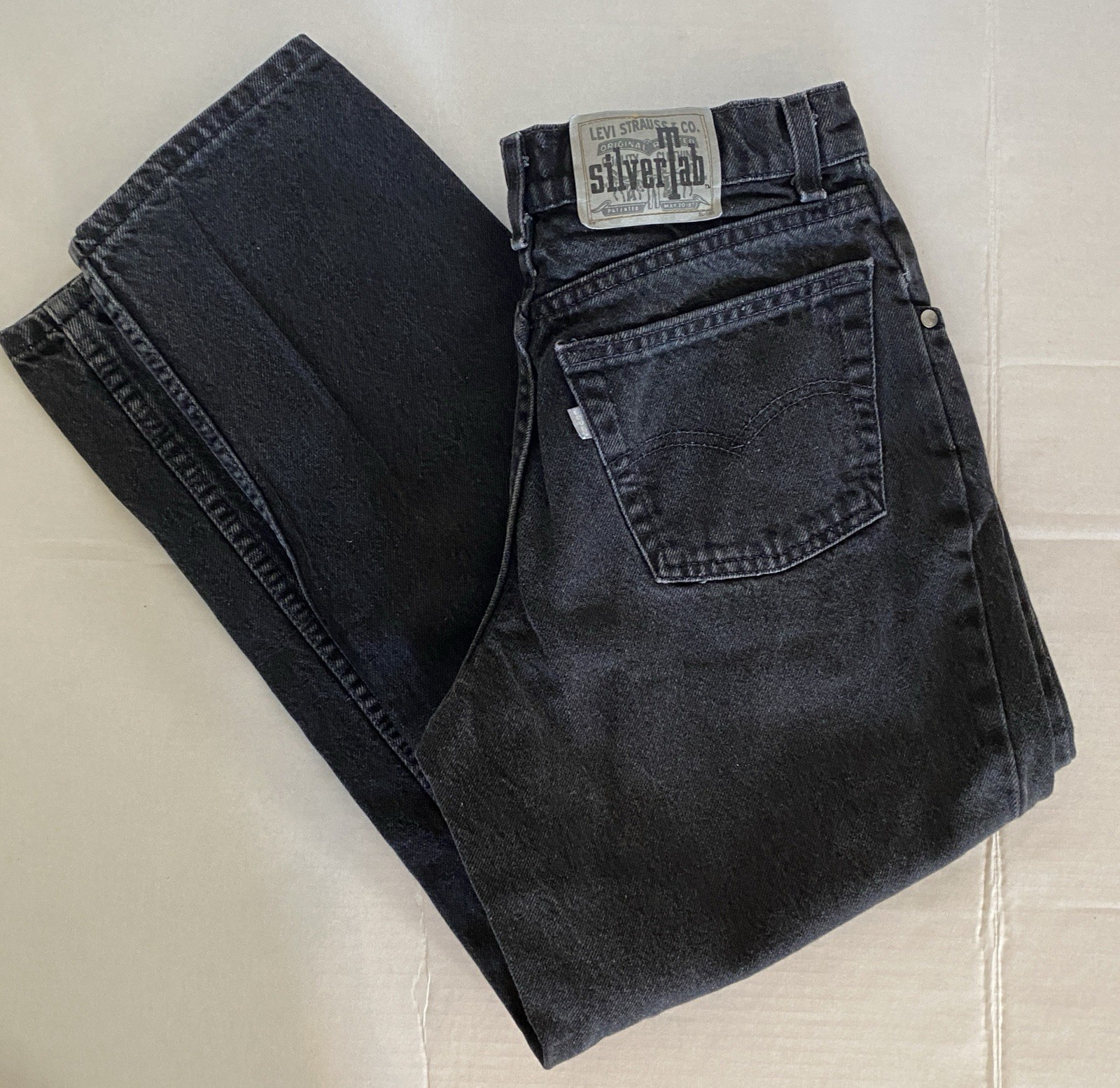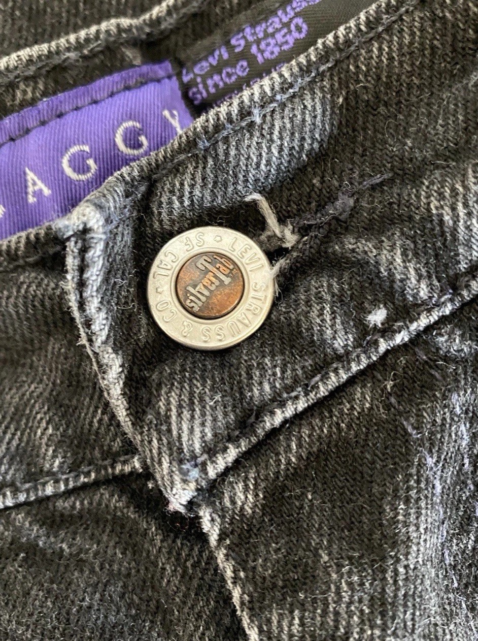 Vintage 90s Levi’s Slivertab Baggy Jeans Black Denim Jeans Mid-Rise RARE 26x27