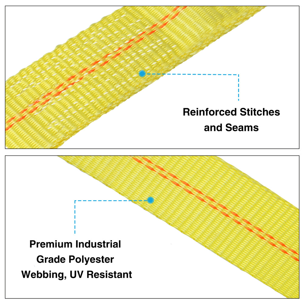 CAR TIRE STRAPS WITH CHAIN ANCHORS - 8' tie down straps with 16” heavy duty chain anchors for extra strength and more adaptable and secure tie down options to d-rings, side rails, grab hooks or stake pockets. DURABLE & HEAVY DUTY TIRE STRAPS - Wheel straps are 2" wide coverage for less friction and made of industrial grade polyester material coated for UV and wear resistance. WON'T SCRATCH OR DAMAGE WHEELS - Each side mount wheel net with non-abrasive material and a cordura wear pads to anti-abrasion so that prolong the strap life and protect rims from damage tension. FIT ALL SIZE TIRES - 8' Lasso straps with smooth D-ring are perfect for car hauling such as race car, pickup truck, SUV or luxury vehicle to any trailer or flatbeds and fit all