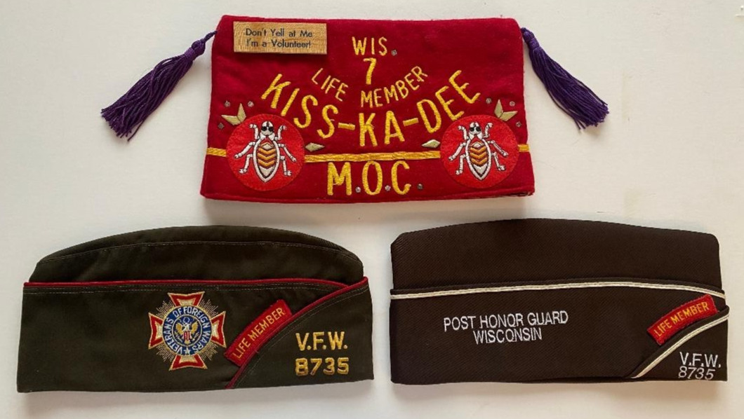 Vintage MOC Order of the Cootie Lot of 5 VFW Hats with Pins Wisconsin 1970's and 1980'sThe three hats in the last picture appear unworn the other two show signs of use/wear.Kiss-Ka-DeeA few have