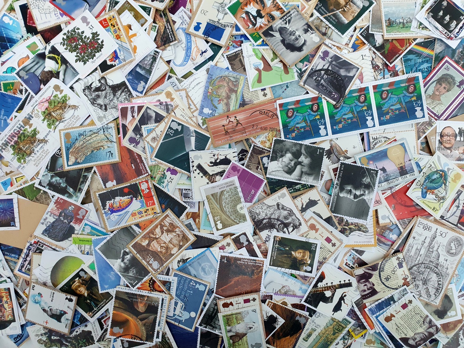 GB - 50 Grams COMMEMORATIVE STAMPS Kiloware - Used - On PaperI have a large quantity of Decimal Commemorative stampsA wide range of trimmed stamps including some high valuesYou will receive 50 Grams taken at random from the boxActual stamps in the photos show the overall lot