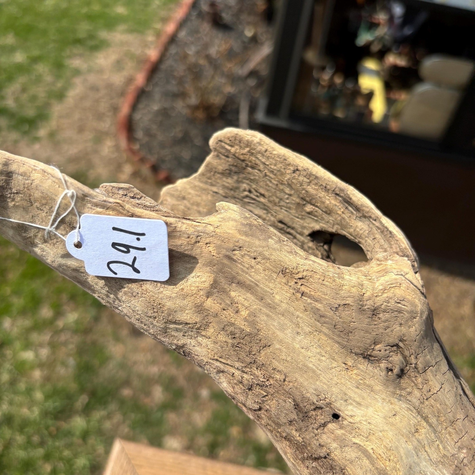 This lightweight hollowed driftwood piece features a beautifully flowing form with multiple natural holes woven throughout its structure. The openings create depth, movement, and visual intrigue, allowing light and space to pass through from every angle.Its elongated shape and airy structure make it easy to position, while still delivering strong sculptural impact—perfect for aquariums and terrariums or as a striking natural accent in organic and minimalist décor.Details	•	Natural driftwood with hollowed, open structure	•	Multiple natural holes creating depth and dimension	•	Lightweight and easy to position	•	Flowing form with strong organic movement	•	Visible grain and textured natural surface	•	Unfinished and natural	•	One-of-a-kind piece — you will receive the exact item shownDimensions	•	22x4x8 inchesNotes on Natural CharacterThis piece is unfinished and natural. Hollow areas, grain variation, surface texture, small cracks, and organic irregularities are characteristic of real driftwood and part of its authentic appeal.⸻Important DisclaimerThis is a natural piece of driftwood sourced ethically from a river in Upstate NY. If intended for aquarium or animal-related applications, proper precautions and treatment should be performed beforehand. Buyer assumes all responsibility for intended use.