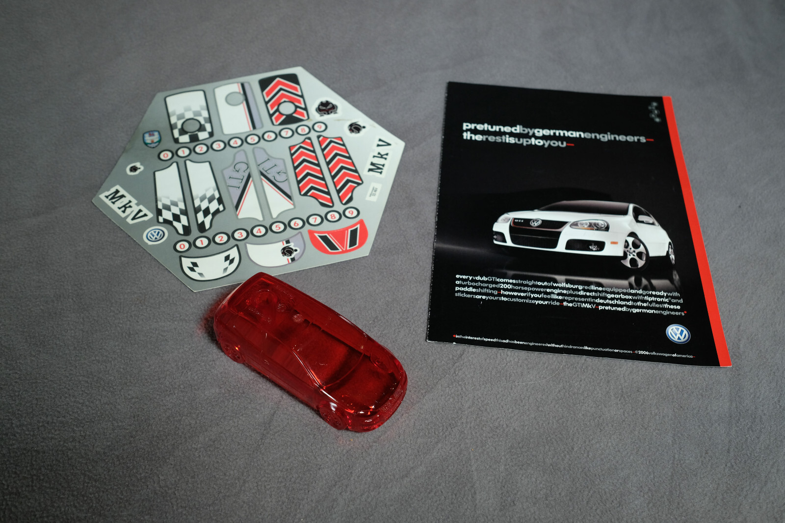 VW 2007 Detroit Auto Show GTI red pencil holder w/unused stickers, booklet RARE