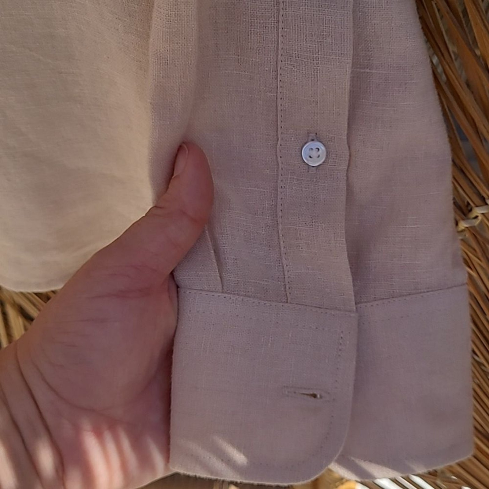 Elevate your wardrobe with this classic beige linen shirt. Perfect for any occasion, it offers both style and comfort.long sleeve. M