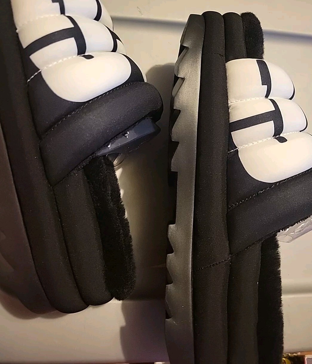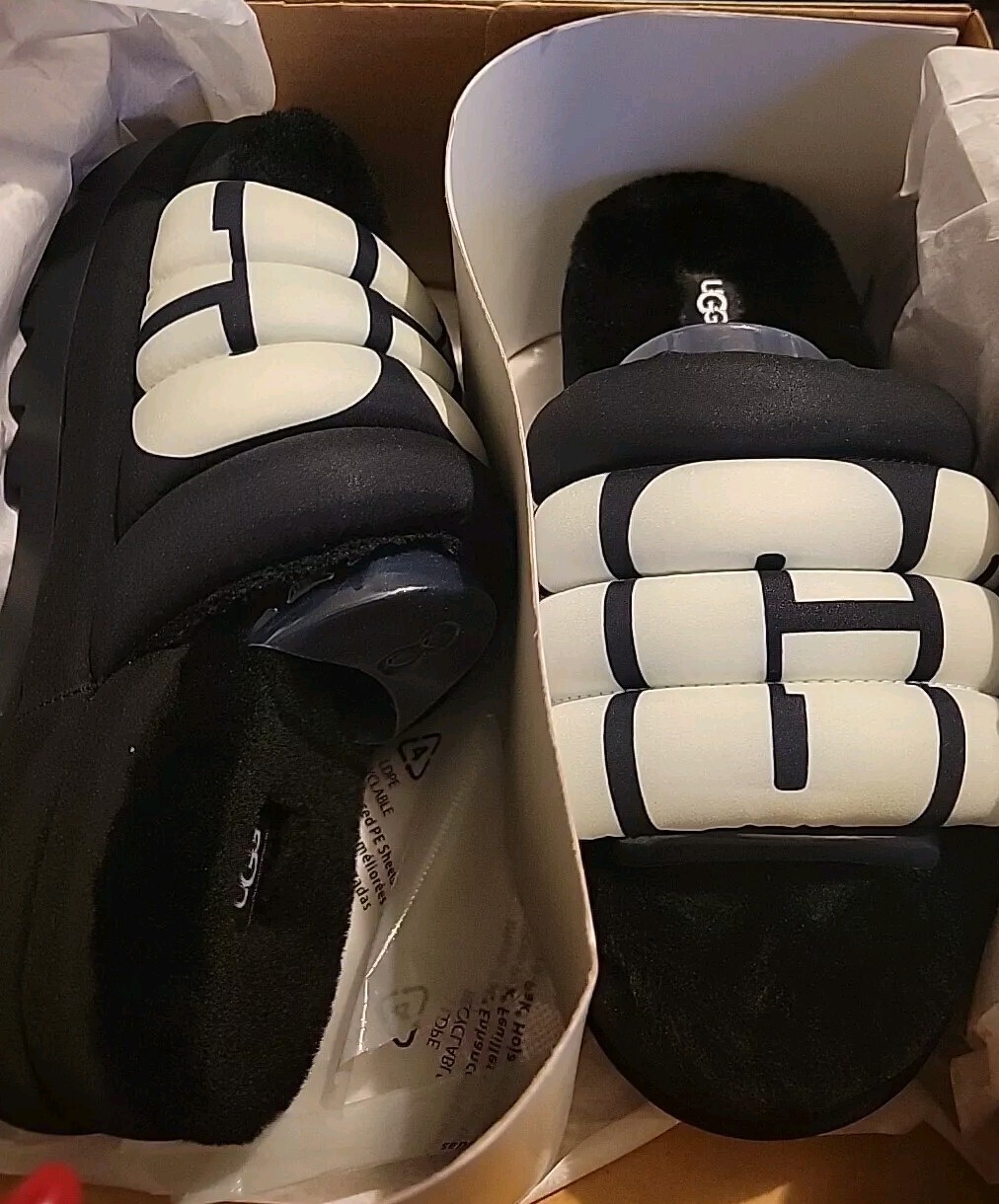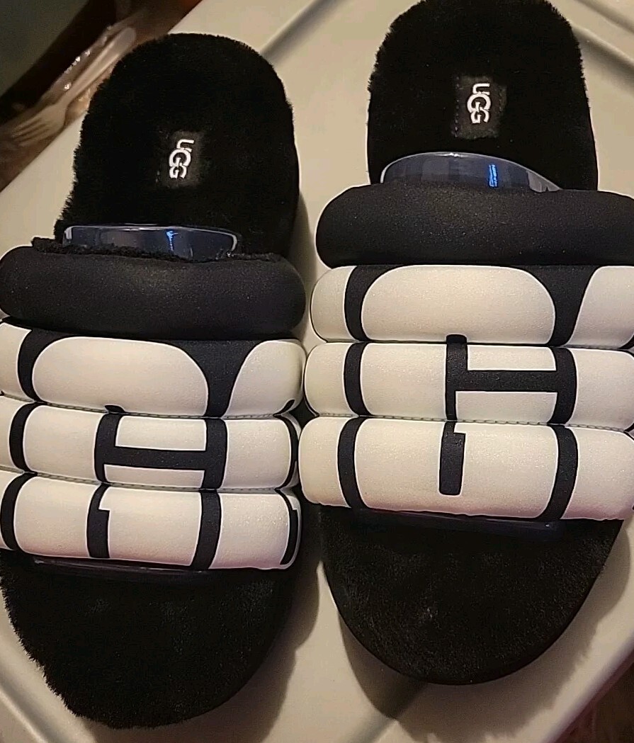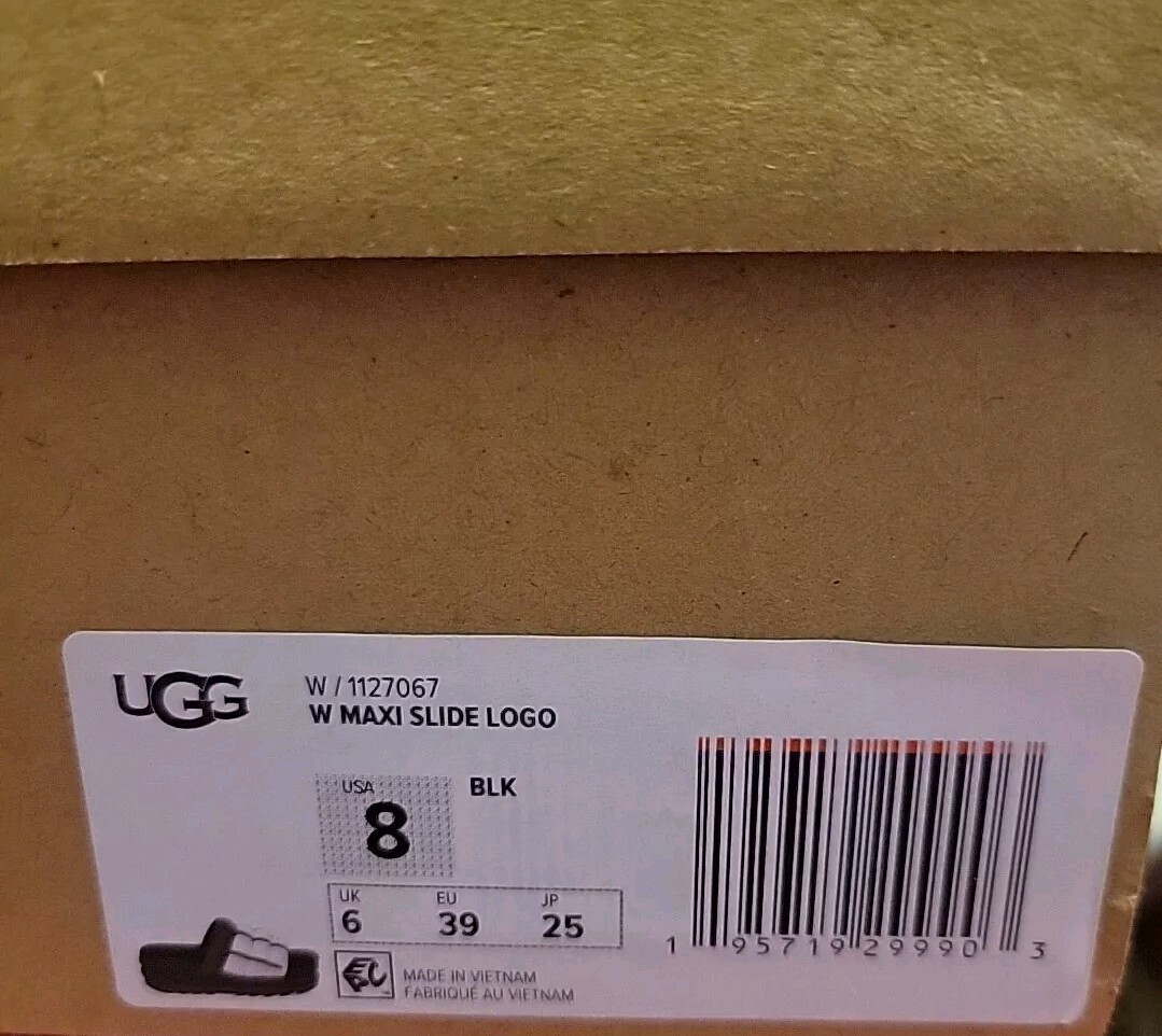 Ugg Women Maxi Slide Logo 1127067 Womens Size 8 US Size 6 UK Black & White Specs