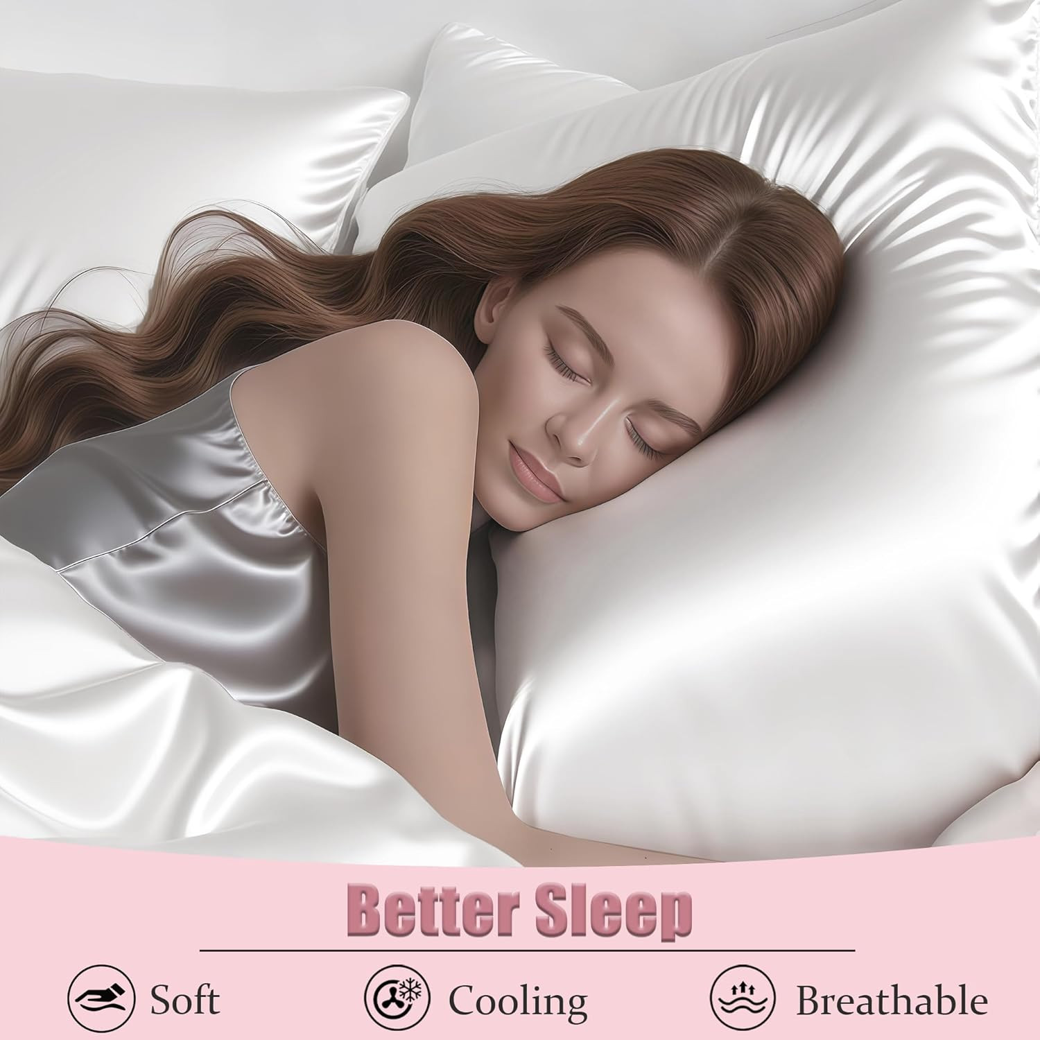 Mulberry Silk Pillow Cases with Zipper, Ultra Smooth Breathable Cooling Pillow