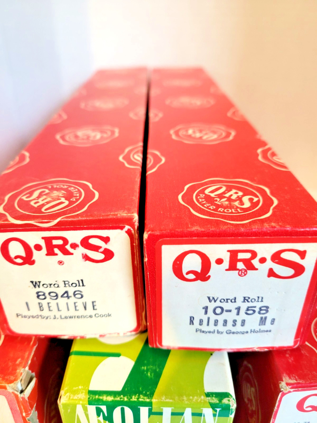 The product is a set of vintage player piano rolls featuring country music, totaling 8 rolls in the collection. The rolls are made by the brand QRS, known for producing high-quality player piano music rolls in the United States. These rolls are specifically designed for vintage pianos and keyboards, allowing enthusiasts to enjoy classic country music tunes with the nostalgic charm of a bygone era. Perfect for collectors or musicians looking to add a touch of vintage flair to their performance or collection.