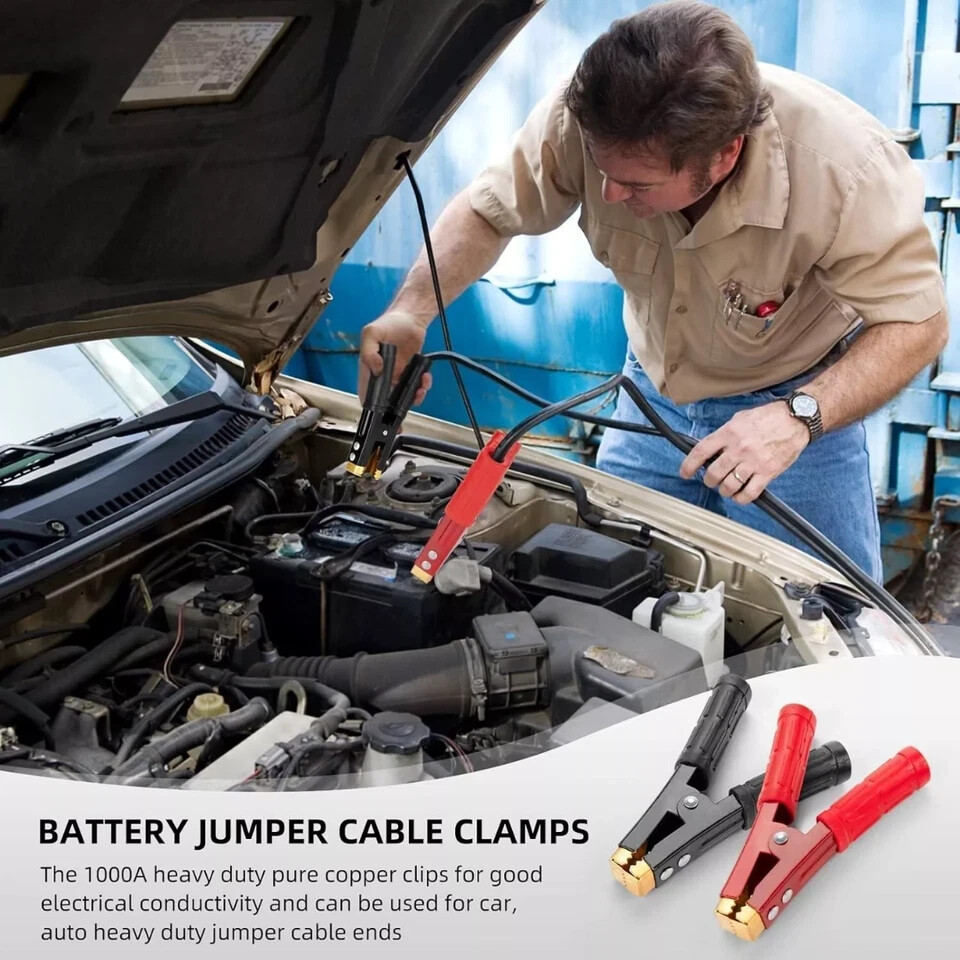 1000A Battery Booster Cable Clamp Pure Copper Jumper Replacement Tool Heavy Duty