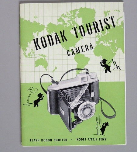Kodak Tourist Camera Flash Kodon Shutter Kodet f/12.5 Lens Instruction Manual Original 1951 in English, 28 pages.