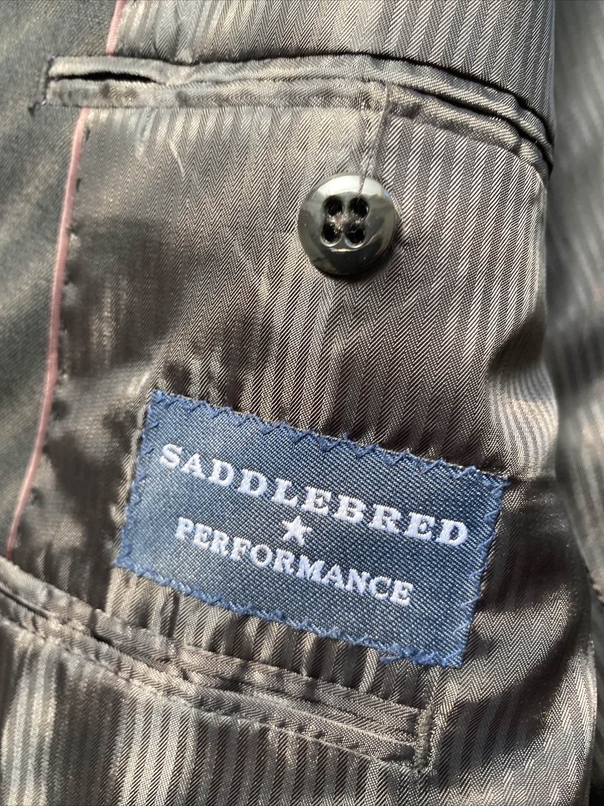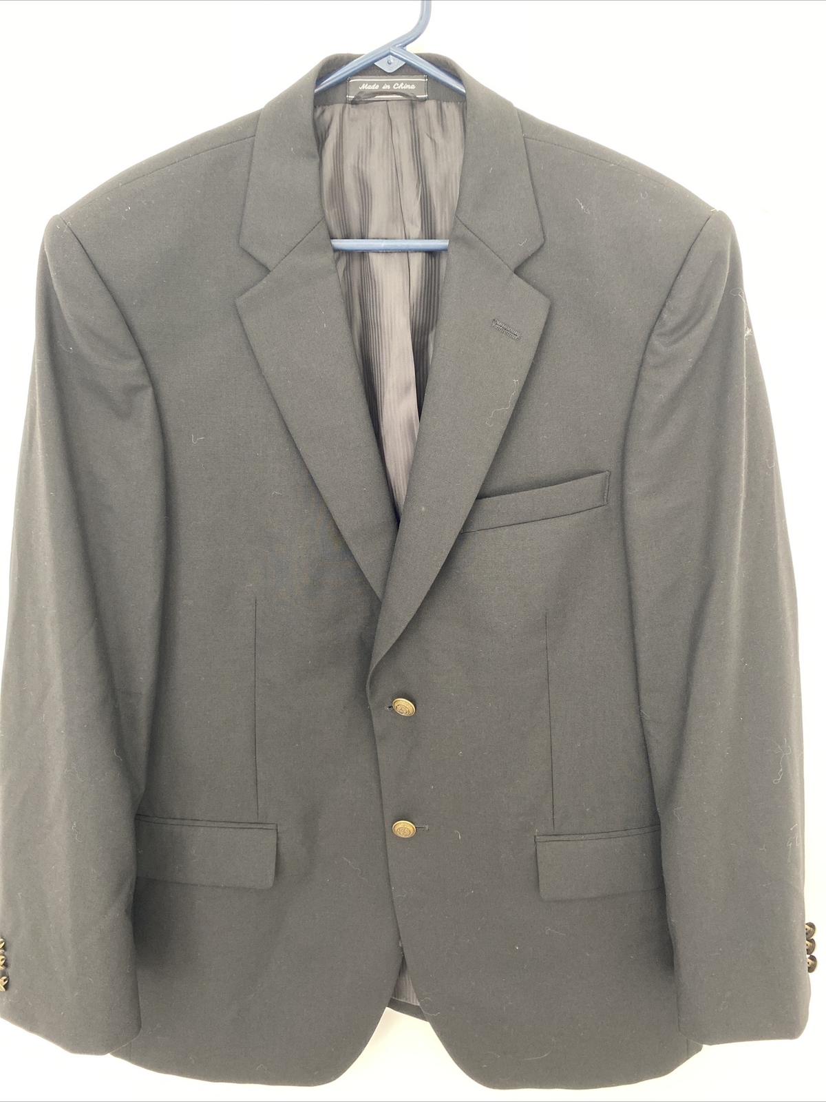 Saddlebred Performance 42R Black wool 2 gold btn Blazer Jacket Sport Coat China. Condition is Pre-owned. Shipped with USPS Priority Mail.