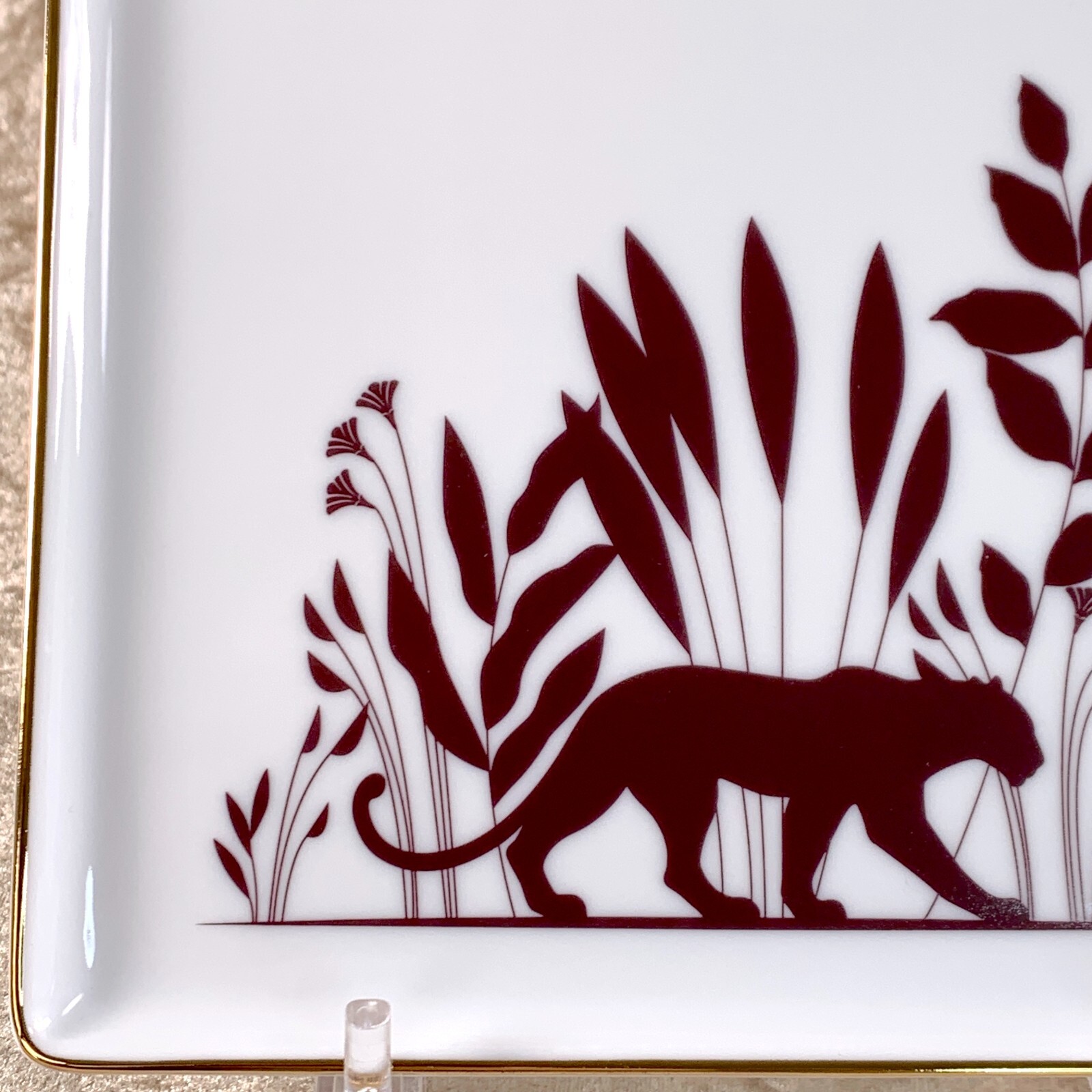 *For U.S. buyers or those shipping to the United States** Customs duties due to the recent elimination of the de minimis exemption are already included in the item price.No extra duty payment is needed. (Effective as of September 2, 2025)"ITEM DESCRIPTIONS"Authentic Cartier Porcelain Trinket Tray / Change Tray "Panthere "Rare VIP Gift from CartierITEM CONDITION: Unused pristine condition. There might are slight signs of wear visible due to long term storage.* Please examine the photos for details.MATERIAL :PorcelainSIZE :18 x 18 cm / 7.0" x 7.0"COLOUR :White / Bordeaux / GoldMADE IN :FranceATTACHMENT(S) :Box*Its authenticity is 100% guaranteed. We welcome any questions/comments you may have. * We also have many other unique items in our store. Please check them out. Thank you!"ABOUT US"Thank you for visiting our store! Our products are all 100% genuine brand items guaranteed and shipped from Japan.We pack items with great care and provide our exceptional customer service.If you have any questions, please feel free to contact us anytime!"SHIPPING"The item will be shipped with FedEx or DHL Express shipping depending on your location. The delivery will be safe and fast with full tracking system.Please be confident with your purchase!* If you buy multiple items, we can reduce our shipping fee. Please contact us before your payment in that case.Please let us know if you have any other questions."PLEASE NOTE"* Payment within 3 days upon purchase is required. * We have 30 day return policy (the item has to be kept in the original condition with all the attachments,and custom duties are not refundable).* Shipping documents will be marked as Merchandise and include the full purchase price.* <For the international buyers - EXCEPT U.S. buyers> Import duties and taxes are NOT included in the item price or shipping cost.These charges are the buyer's responsibility (Each country has different regulations. Please check with your country's custom for details ).
