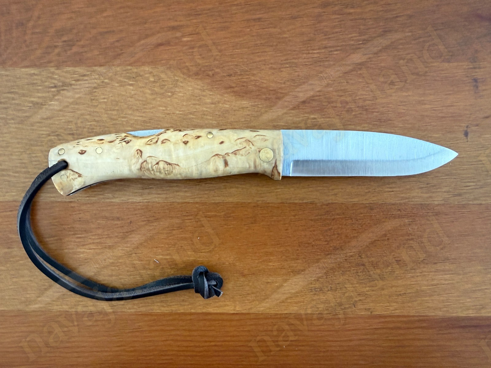 JOKER ARTICA – Bushcraft Folding Knife (Curly Birch Handle) Authentic Joker knife – Made in Albacete, Spain Bushcraft / outdoor folding knife Stainless steel blade: Sandvik 14C28N Hardness: 58–59 HRC Blade length: 8 cm (3.15 in) | Drop point, satin finish Blade thickness: 3 mm (0.12 in) Blade width: 21 mm (0.83 in) Curly birch handle – natural, elegant, and ergonomic Handle length: 10.5 cm (4.13 in) Total length (open): 18.5 cm (7.28 in) Lock type: Back lock Manual opening Lanyard hole for neck carry or pack attachment Weight: 110 g (3.9 oz) Ideal for bushcraft, carving, hiking & outdoor adventures Description The Joker Artica Folding Knife is inspired by Nordic bushcraft traditions and handcrafted in Albacete, Spain, blending minimalist Scandinavian design with renowned Spanish knife-making expertise. Its Sandvik 14C28N stainless steel blade, hardened to 58–59 HRC, delivers excellent edge retention, corrosion resistance, and precise cutting performance. The drop point blade with a satin finish is well-suited for carving, camp tasks, and general outdoor use. The knife features a beautifully finished curly birch handle, offering a warm feel, secure grip, and distinctive natural grain. A back lock mechanism ensures safe and reliable operation, while the lanyard hole adds versatility for carry options. Compact, elegant, and highly functional, the Joker Artica is a trusted companion for bushcraft enthusiasts, survivalists, and knife collectors alike.There is no ratcheting sound on opening; this navaja doesn't have a ratchet. Stock images, the knife you purchase, the curly birch wood handle may vary slightly from the one shown in the pictures.