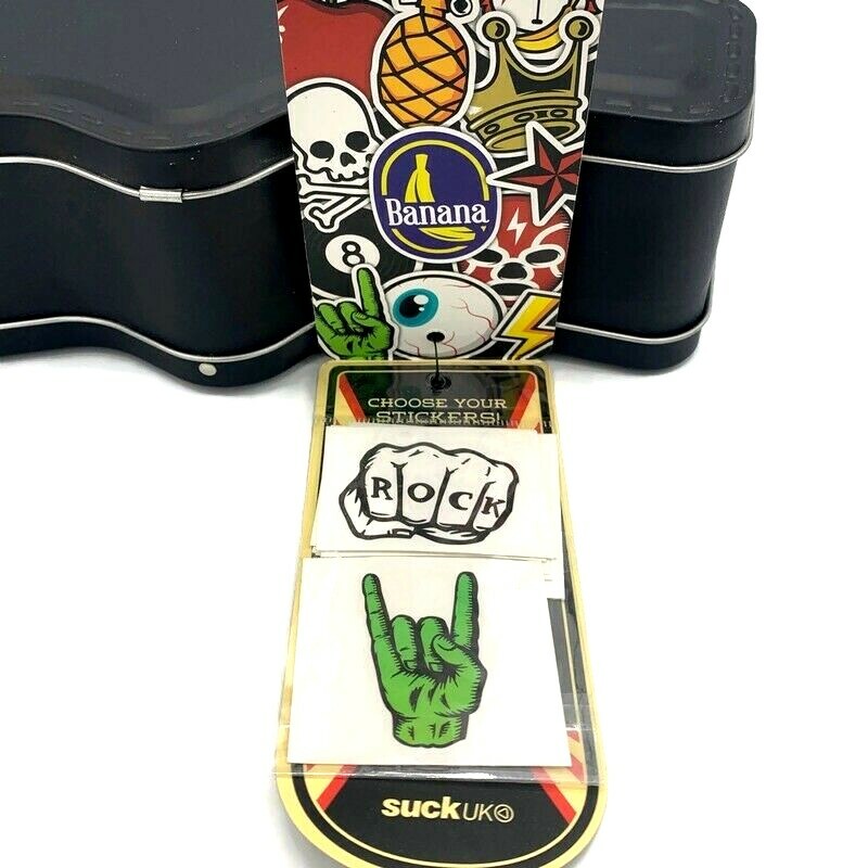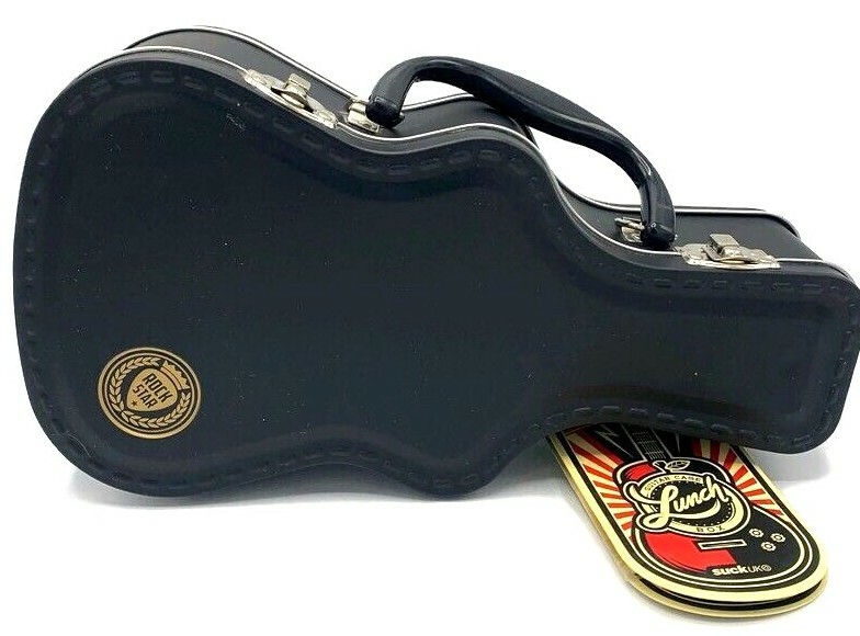 Rare Suck UK Rock Star Black Tin Guitar Case Lunch Box/Food Storage New w/ Tags Condition is New. This item has never been used.Color: Black This guitar-shaped lunch storage tin is a unique storage case for any adult or child to stand out from the norm. Ideal for collectors. Measurements: Height: 11"Depth: 3"Diameter (Head of guitar): 6" Stickers included to decorate your guitar lunch box any way you want. Please see all pictures for full details. Shipping & Handling:EXPEDITED SHIPPING & TRACKING included.Next day shipping. Please email with any questions.