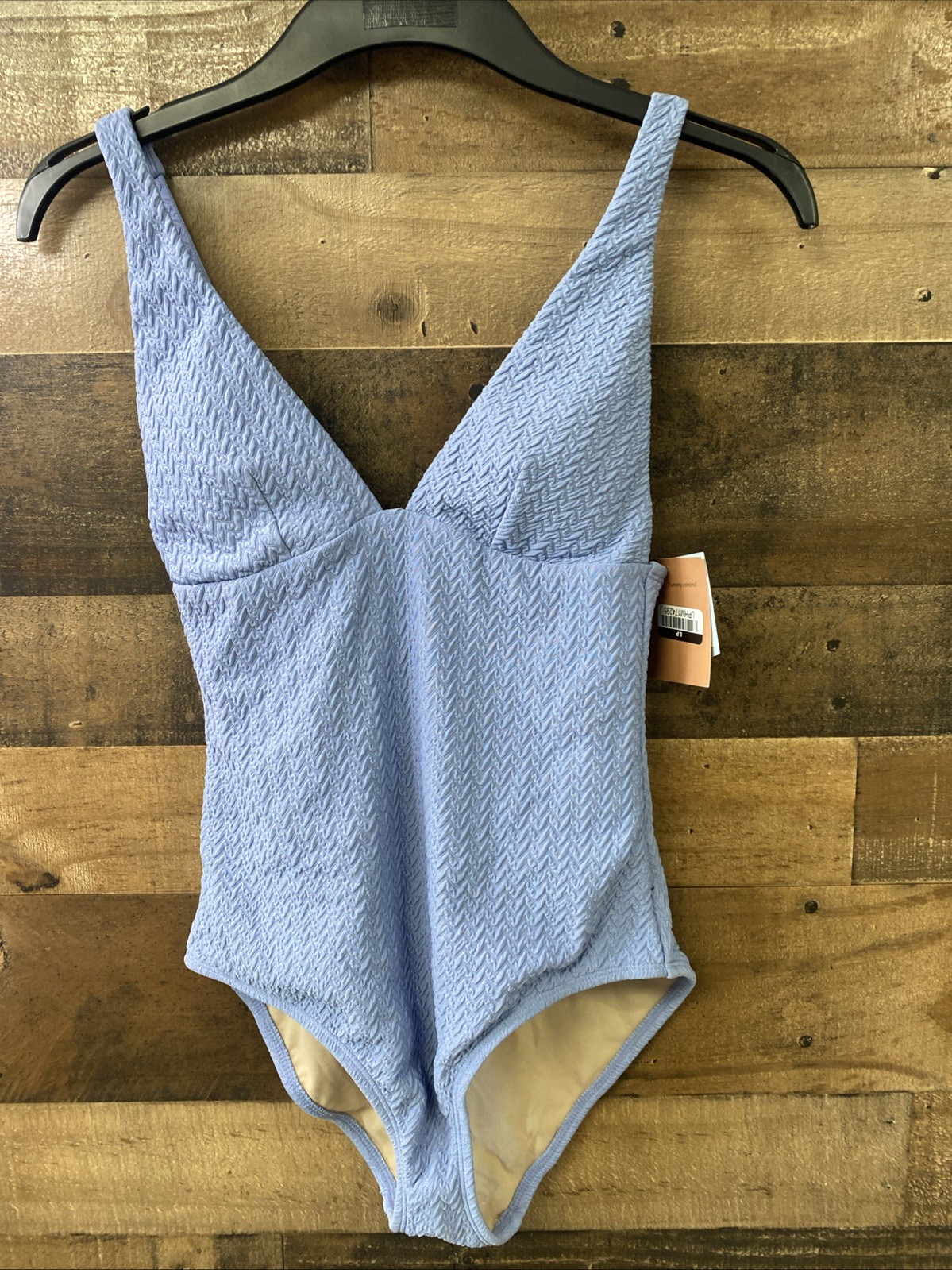 Women's Chevron Jacquard Textured Full Coverage Blue Swimsuit Shade & Shore XS Unsold retail inventory, may show slight signs of wear or small blemishes from having been displayed, handled or tried on. May have clearance stickers or sticker residue on tags.