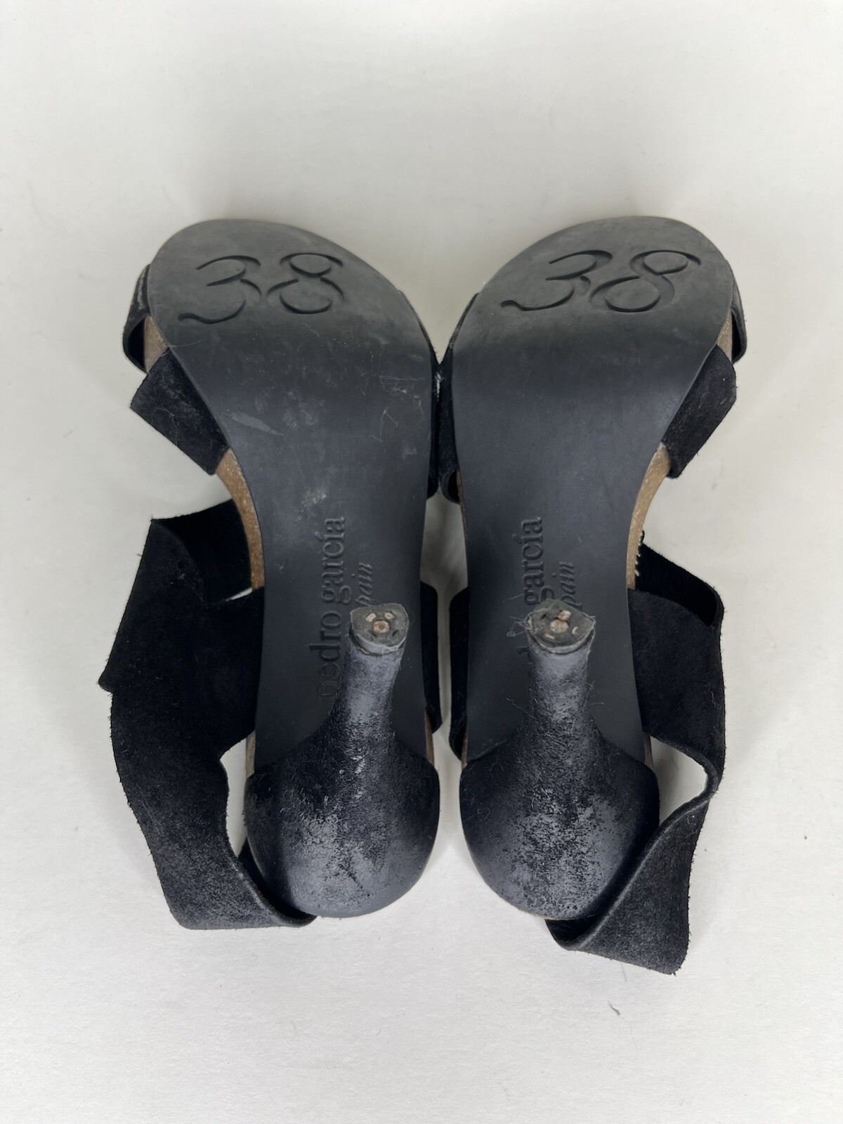 size of 38, these shoes are a must-have for any fashion-forward woman.These Pedro García shoes are the perfect choice for any stylish woman looking for a comfortable and elegant shoe. The suede upper material combined with the leather lining and insole provide a luxurious feel while the rubber outsole ensures practicality. These shoes are versatile, perfect for any occasion from weddings to business meetings. Add these stunning heels to your collection today!Beautiful shoes Marks of use and wear “”Refer to pictures “Very strong shoes Lots of life left 4.25”heel