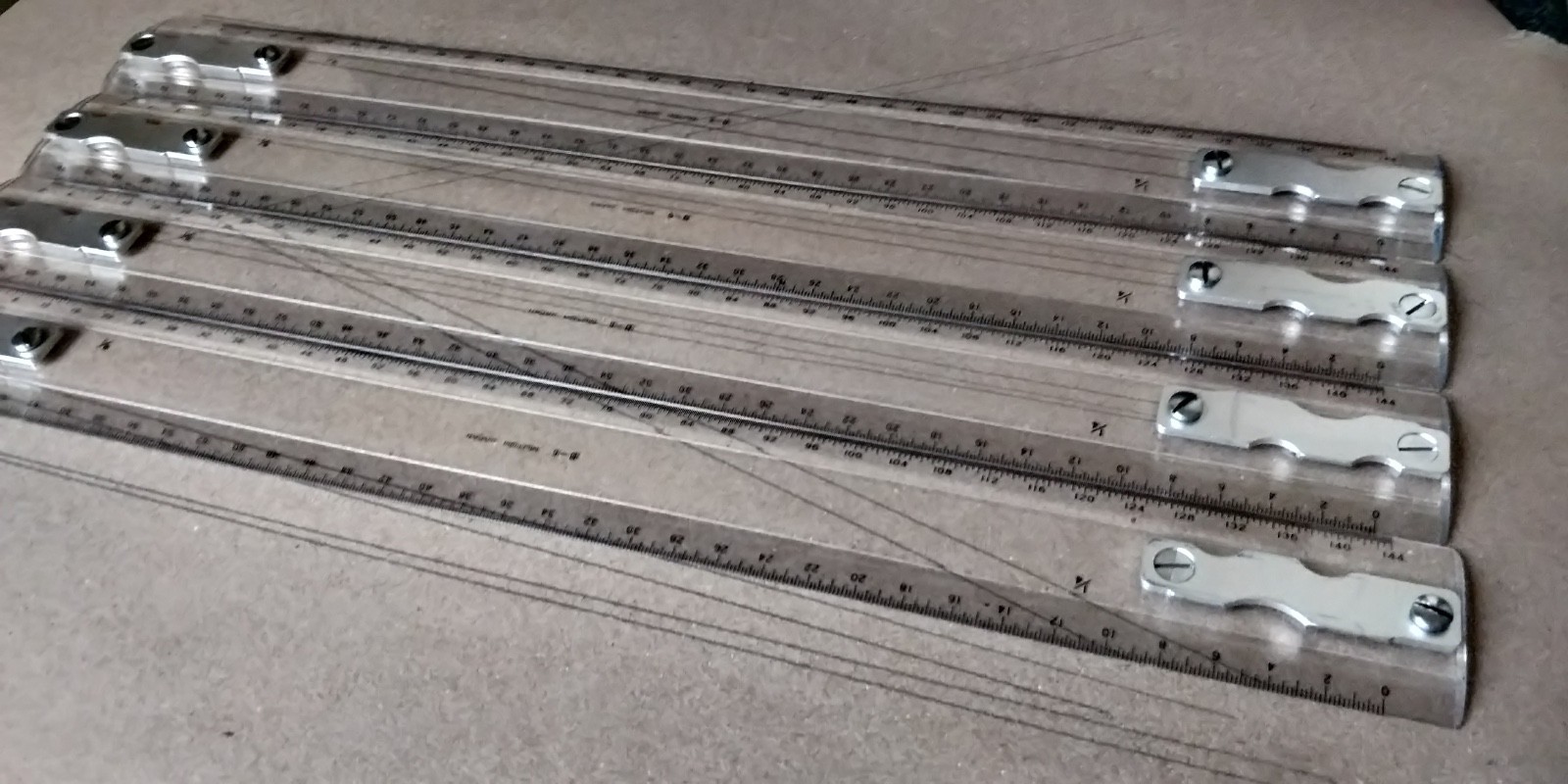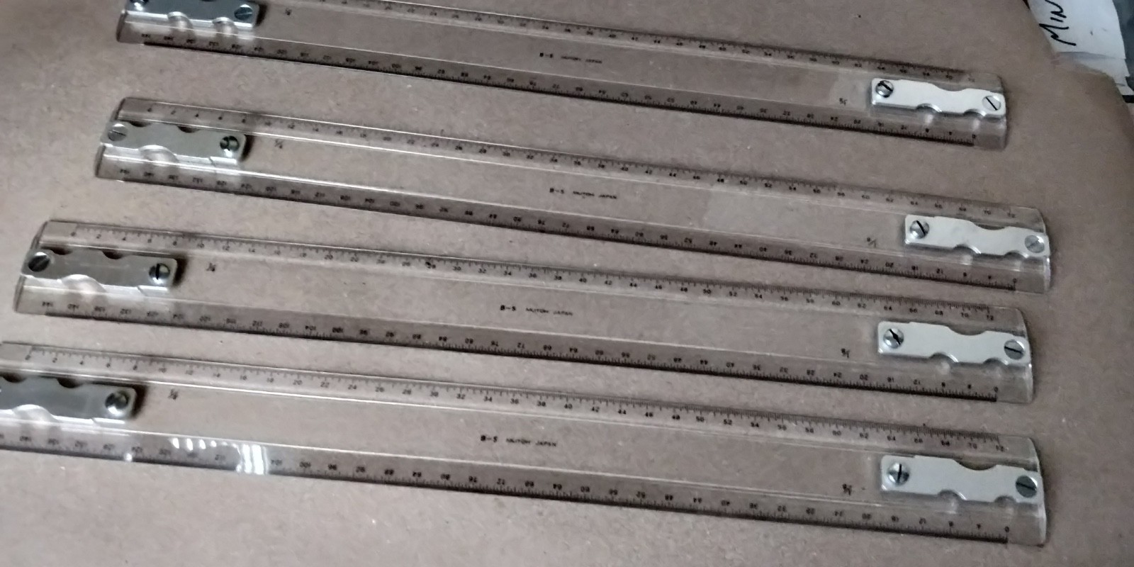4 available all are in good used condition. Good edges. Produces clean crisp lines.Inspected and tested by drafting lines for the full length of the rule.