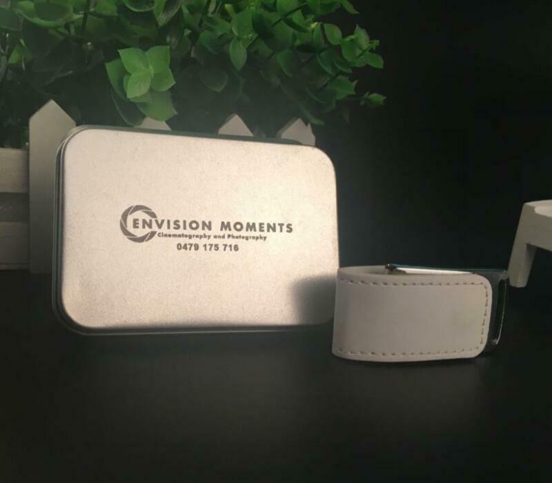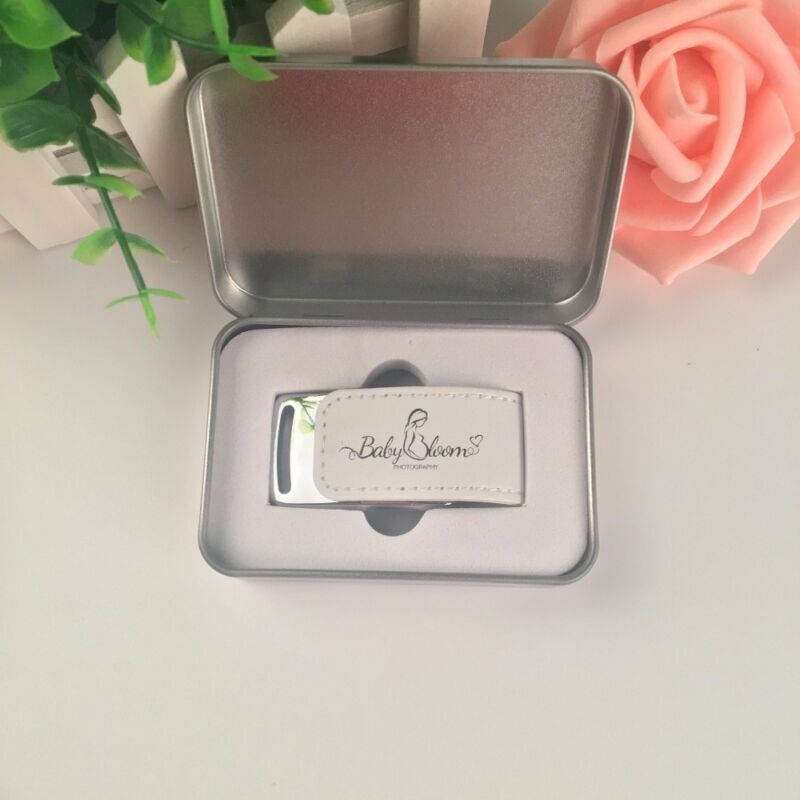 White Leather USB 3.0 Flash Pen Drive Custom Print Wedding Gift Pendrive Tin box Specs