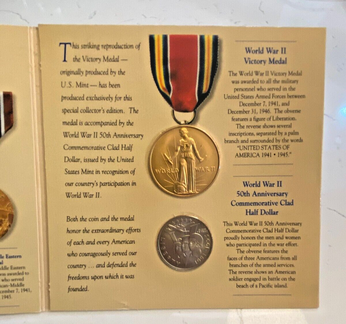 US Mint WWII Commemorative Coin & Victory Medal Set (1991-1995)