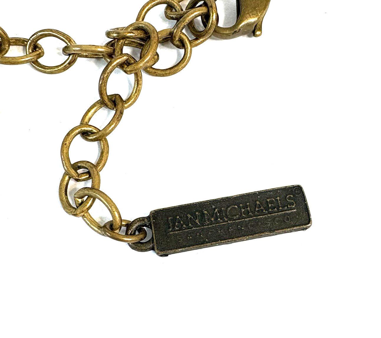 Jan Michaels Necklace Antiqued Brasstone Chunky Pendant Ethnic Boho ArtisanExcellent pre-owned condition. No issues.Fabulous pendant necklace by artisan Jan Michaels. Antiqued brasstone mech chain is nice and chunky. 2" pendant is faux bone set in antiqued brasstone metal. Chain measures 14" at the shortest with a 4" extender.
