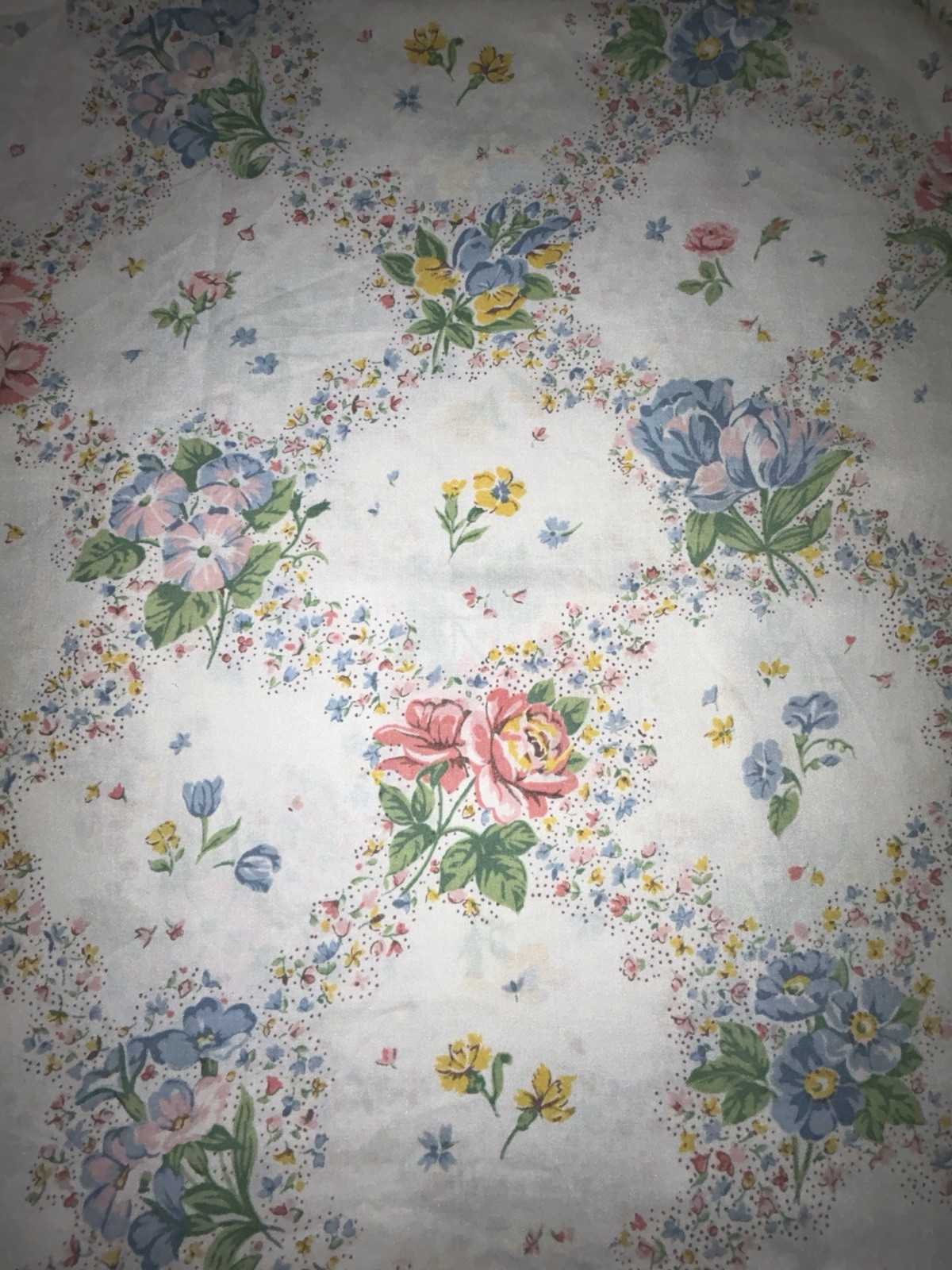 Sheets are in used condition and may have small stains, holes, pilling, fading, loose stitching, unraveled hems, etc. Also, we have cats and I lost my hair during chemo, and while I do lint roll everything, something may sneak past me. I apologize in advance.Measurements are approximate as follows ( in inches):JCPenney: 79 X 96 (big paint stain)Springmaid: 72 X 94 (small black marks)Lady Pepperell: 65 X 94No label: 65 X 96From a smoke free, cat friendly home.