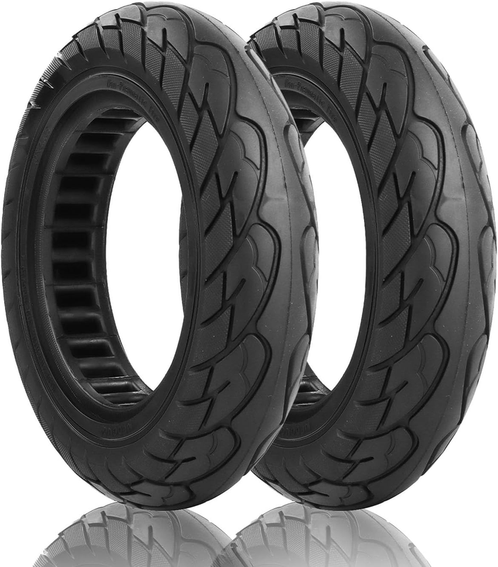 size you need is 10x2.125 inches before purchasing).Honeycomb Tire Design:This 10-inch scooter tire is more resilient to uneven roads, such as grass roads. The interior of the tire is designed with honeycomb holes, which can increase the damping effect by 35% and effectively ease the bumps on the road.Solid tire service and quality in the market is very popular. If the solid tire has any quality problems, welcome 24hs contact us at any time.Puncture-free tires:Solid tires are puncture resistant. They reduce the chances of any sudden breakdown. And improved carrying capacity. Product Description How To Install ? Please soften the tires in boiling water.Place the rim on the ground and place the tire on the rim. Place the sides of the rim on the inside of the tyre. Then place both feet on the rim of the tyre (be careful to slip) and slide the tire levers between the rim and the tyre (prepare multiple installation levers yourself)Adjust the position until the smooth tyre slides upwards and is secured in the rim. (Make sure you need a