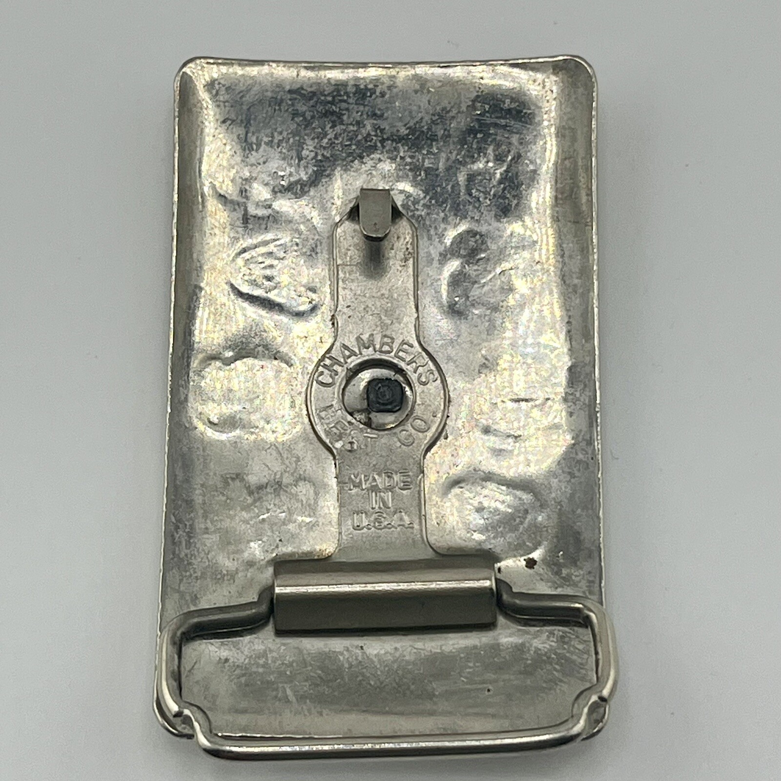Add some Western flair to your wardrobe with this vintage metal belt buckle set from Chambers Belt Co. made in the USA. The intricate design features a cowboy and pistol cow branding, perfect for any Western enthusiast. The provenance of this item is not available, but it is an original piece made in the United States. This belt buckle set is a great addition to any collection of Western Americana and is sure to make a statement. Whether you're dressing up for a costume party or just want to add some cowboy charm to your everyday outfits, this item is perfect for you.