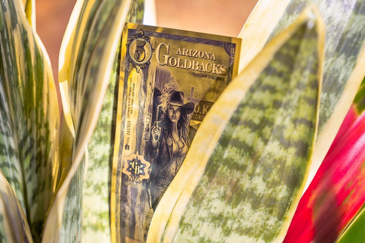 The Arizona 5Virtue: Lex et Ordo (Law and Order)Enduring Principle: “Fast is fine, but accuracy is everything.” — Wyatt EarpThe virtue of Lex et Ordo—Law and Order—comes alive in this vivid scene from Tombstone, Arizona. The artwork draws inspiration from the infamous 1881 gunfight at the O.K. Corral, when the Earp brothers and Doc Holliday faced off against the Cochise County Cowboys. The gunfight was over in less than a minute, yet it became one of the most legendary events of the Wild West.This Goldback reimagines that history through the figure of a law woman who personifies Lex et Ordo. She strides forward with Virgil Earp’s U.S. Marshal badge pinned proudly to her chest, embodying the courage of those who stood their ground. She is both strength and justice incarnate, a reminder that maintaining law and order requires a steady hand when chaos rises.Around her, symbolic details enrich the story. The O.K. Corral sign anchors the scene to the setting. A Gila monster crawls across the dirt, embodying the desert’s ever-present dangers. Desert daisies bloom in reference to Doc Holliday’s biting words, “You’re a daisy if you do.”Along the bottom, the enduring principle is inscribed: “Fast is fine, but accuracy is everything.” This Arizona Goldback honors both the history of Tombstone and the timeless virtue of Lex et Ordo—a legacy that still resonates far beyond the O.K. Corral.The virtue of Lex et Ordo—Law and Order—comes alive in this vivid scene from Tombstone, Arizona. The artwork draws inspiration from the infamous 1881 gunfight at the O.K. Corral. A law woman strides forward with Virgil Earp’s U.S. Marshal badge pinned proudly to her chest, embodying the courage of those who stood their ground. Around her, symbolic details enrich the story: the O.K. Corral sets the scene; a Gila monster crawls across the dirt; and desert daisies bloom in reference to Doc Holliday’s biting words, “You’re a daisy if you do.”Along the bottom, the enduring principle is inscribed: “Fast is fine, but accuracy is everything.”Protective Sleeve Included We protect every uncirculated Goldback inside a rigid BWC Deluxe Currency bill holder, which is included with purchase.Your Goldback will be similar to the image shown above. Goldback