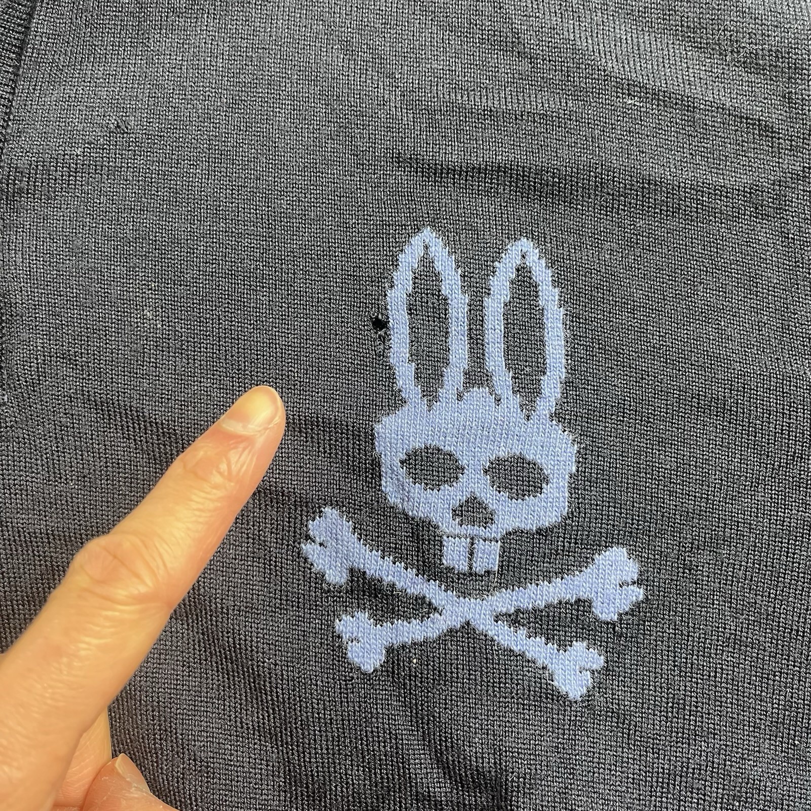 Psycho Bunny Mens XL Merino Wool Quarter Zip Mock Neck Blue Sweater Preppy Specs